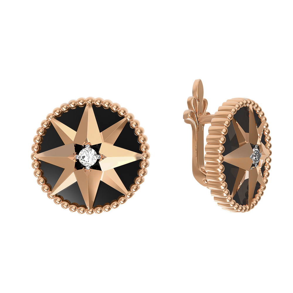 Серьги из золота c фианитом и ониксом