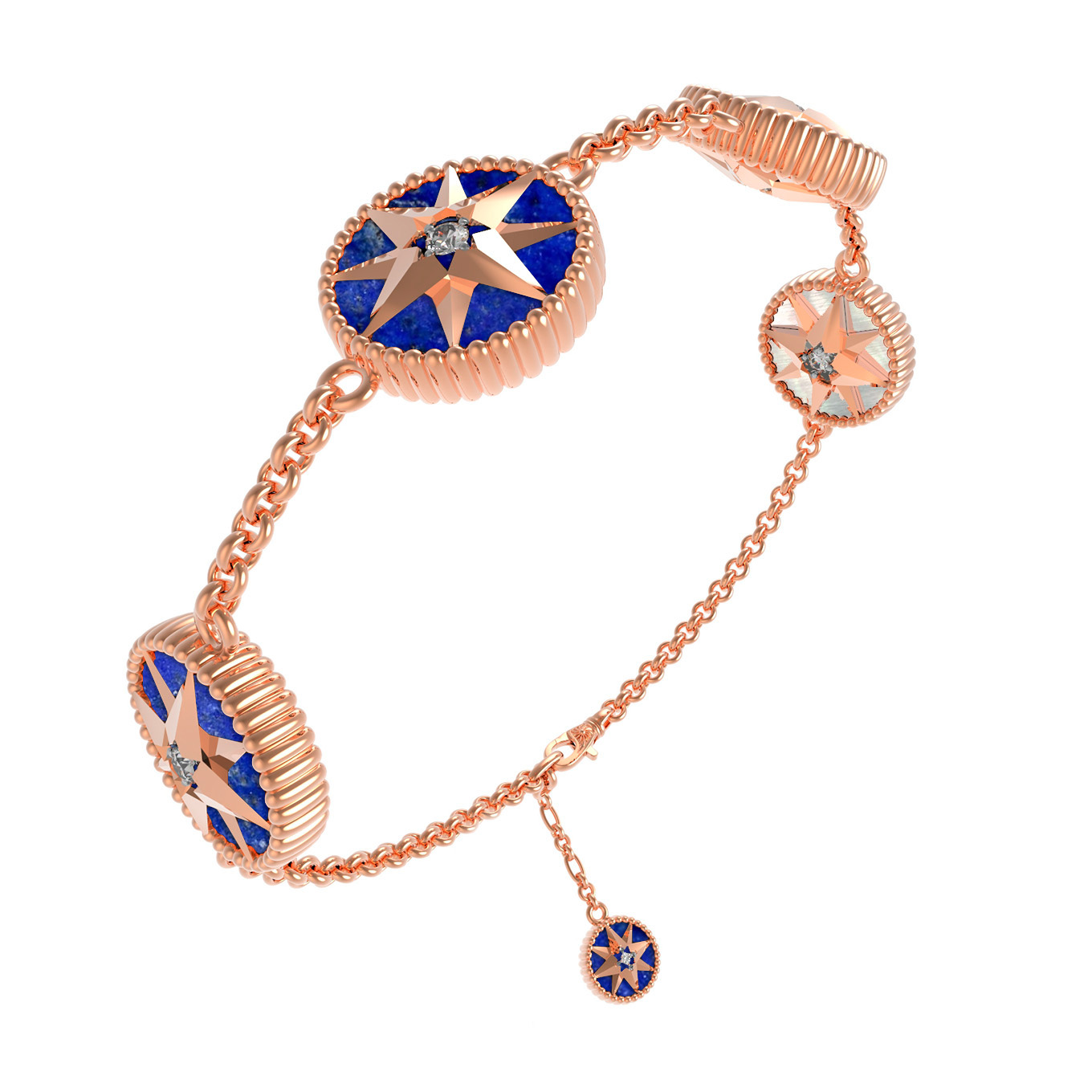 Браслет из золота c фианитом, лазуритом и перламутром