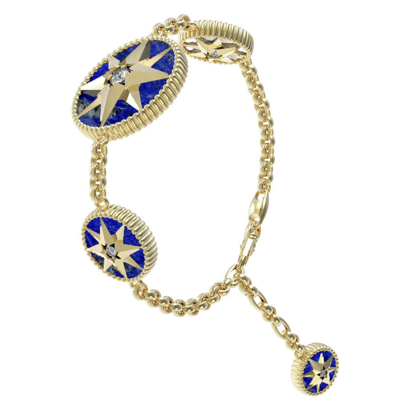 Браслет из лимонного золота c фианитом, лазуритом и перламутром