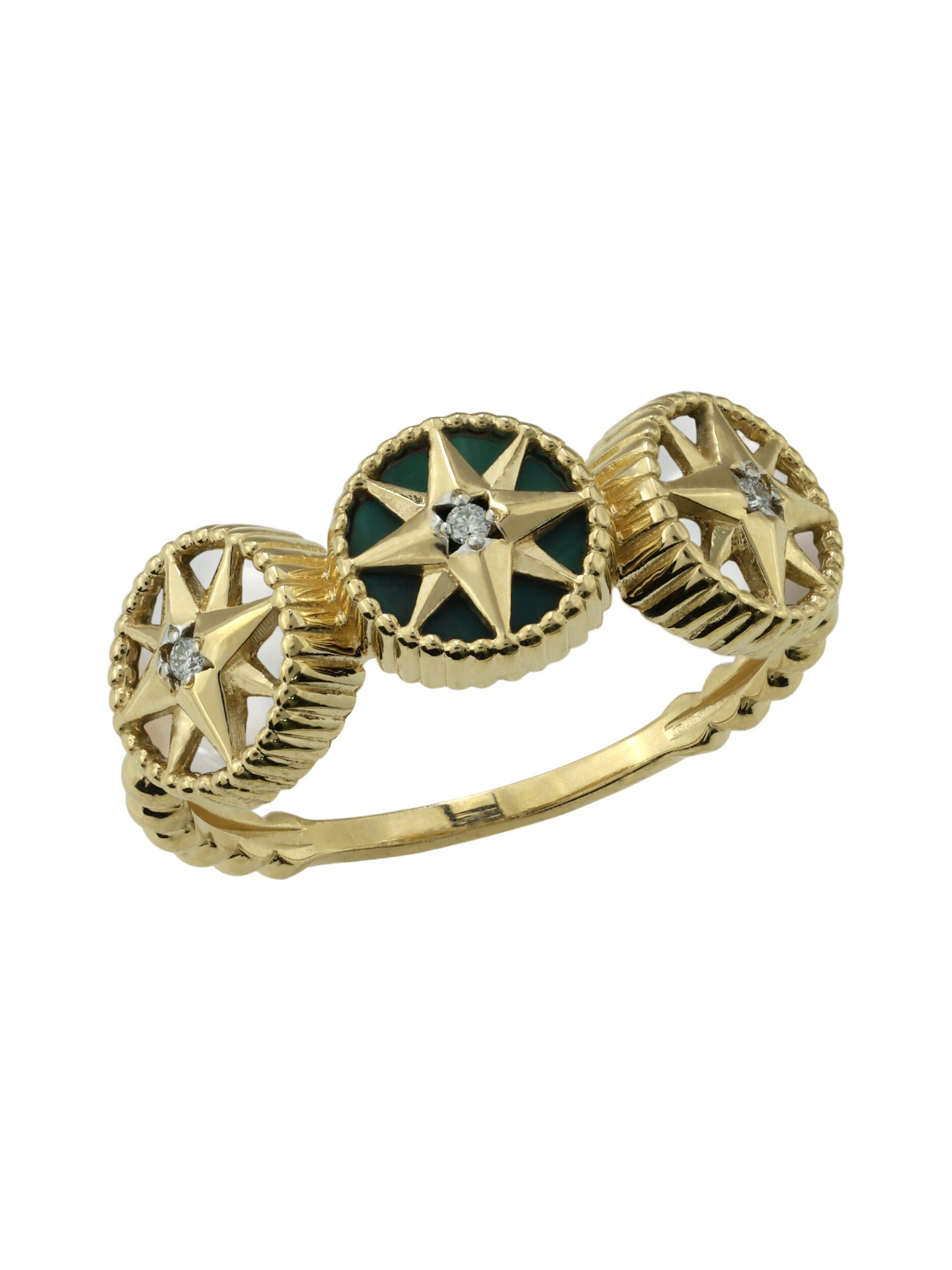 Кольцо из лимонного золота c бриллиантами, малахитом и перламутром