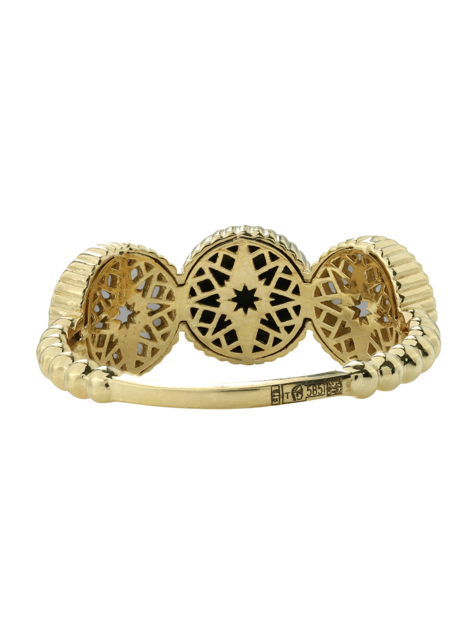 Кольцо из лимонного золота c бриллиантами, ониксом и перламутром