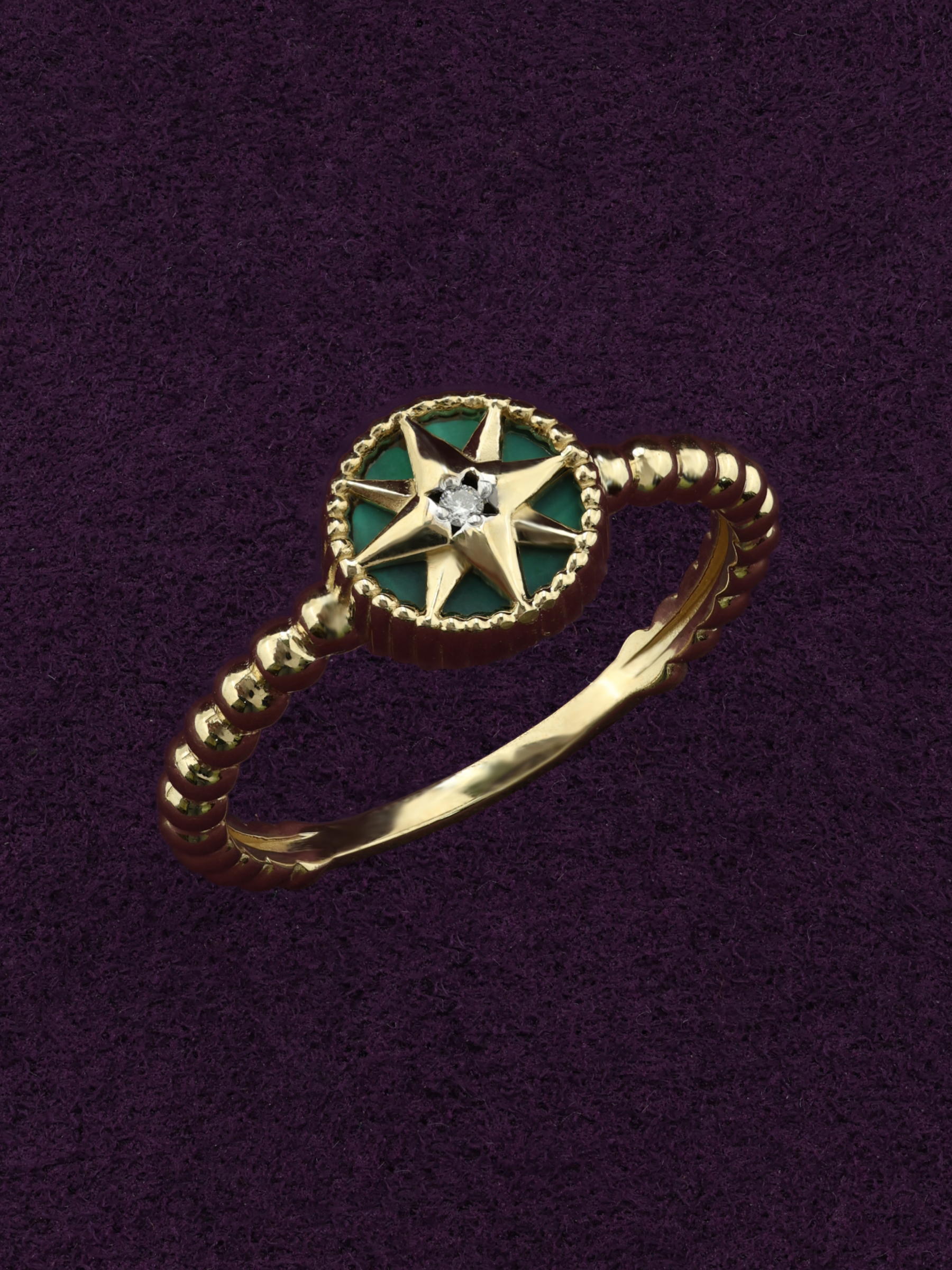 Кольцо из лимонного золота c бриллиантами и малахитом