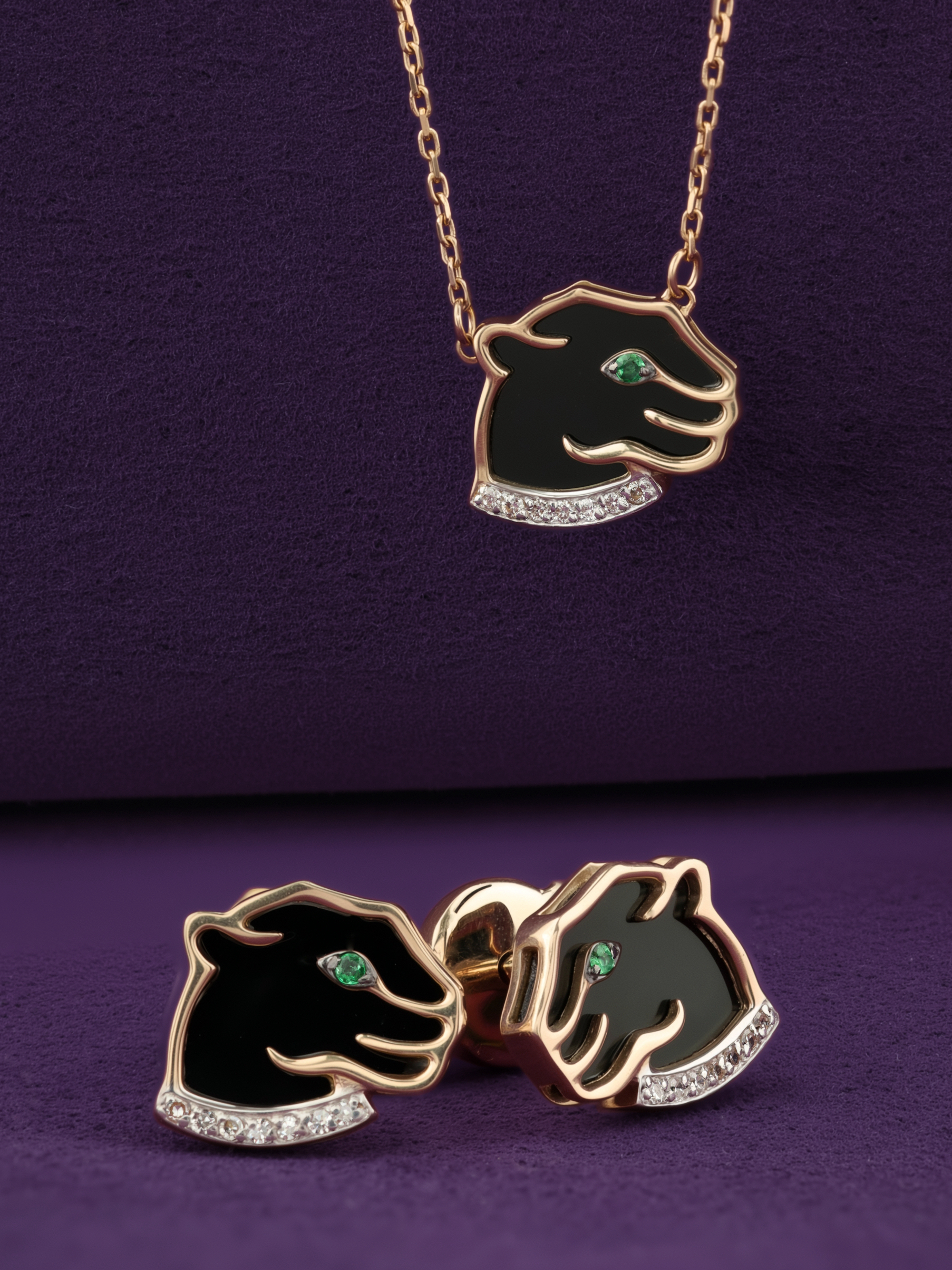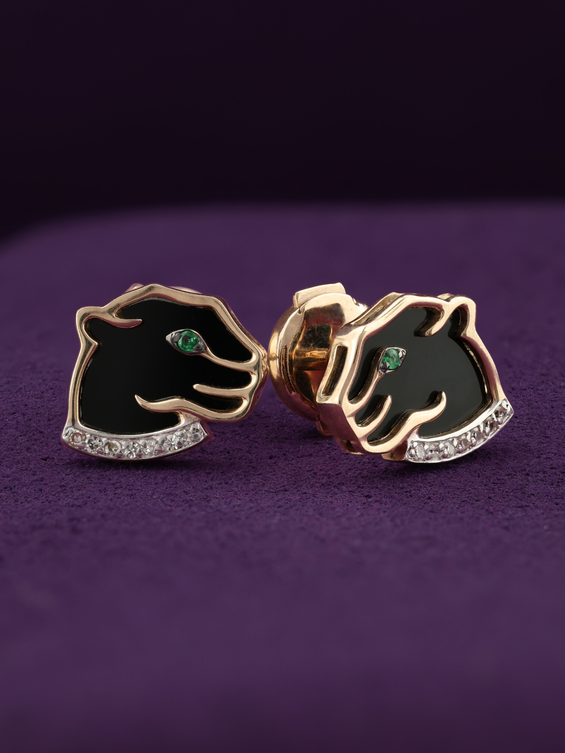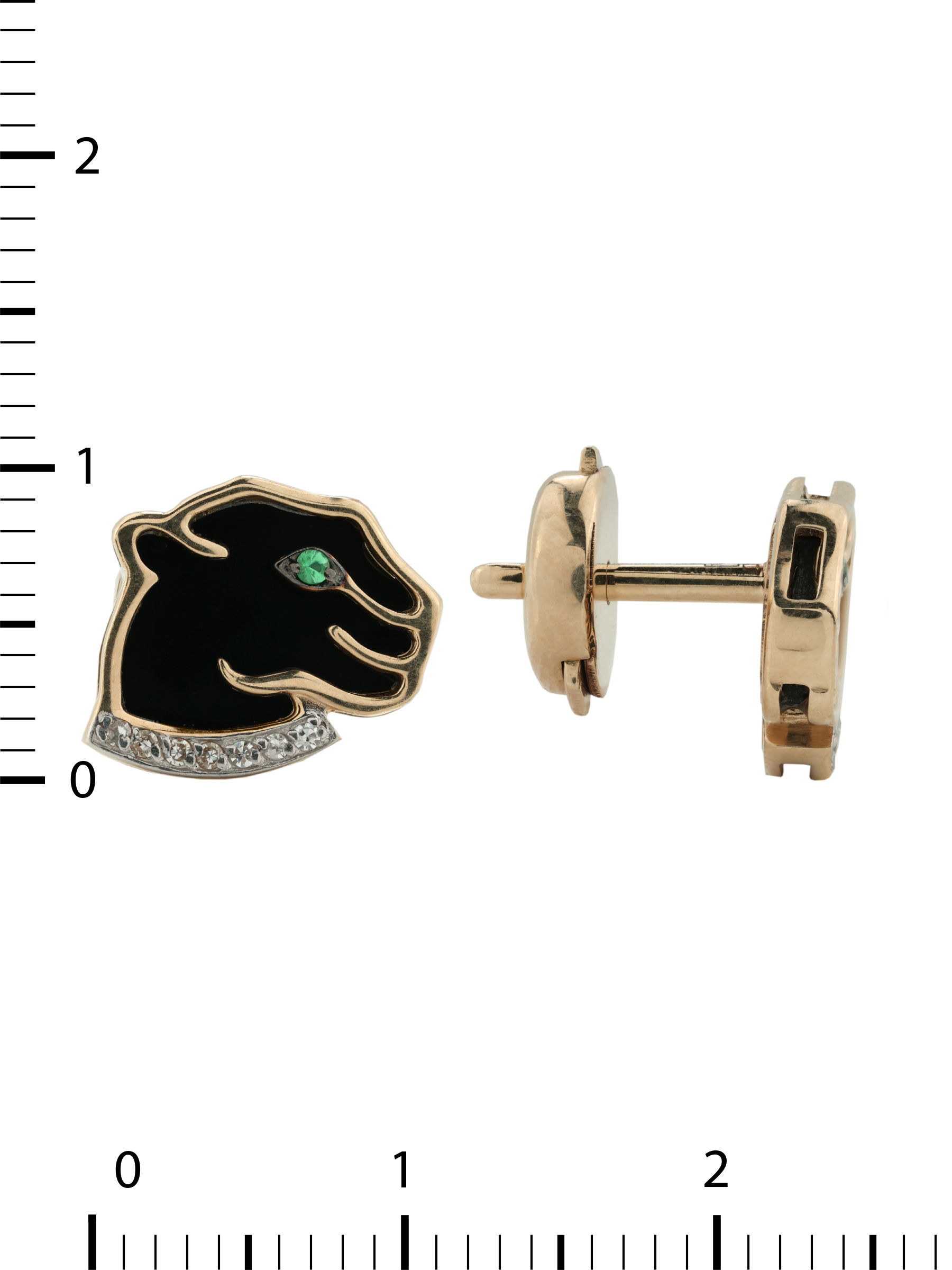 Серьги из золота c бриллиантами, изумрудом и ониксом