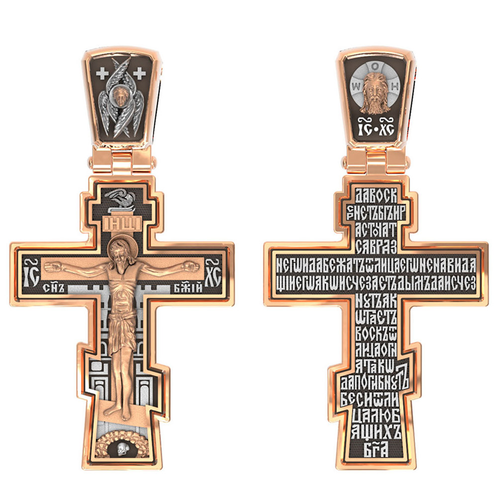 Восьмиконечный нательный крест с Распятием Иисуса Христа на горе Голгофе. Форма этого кресты является одной из самых распространенных на Руси и более всего соответствует тому Кресту, на котором был распят Христос.