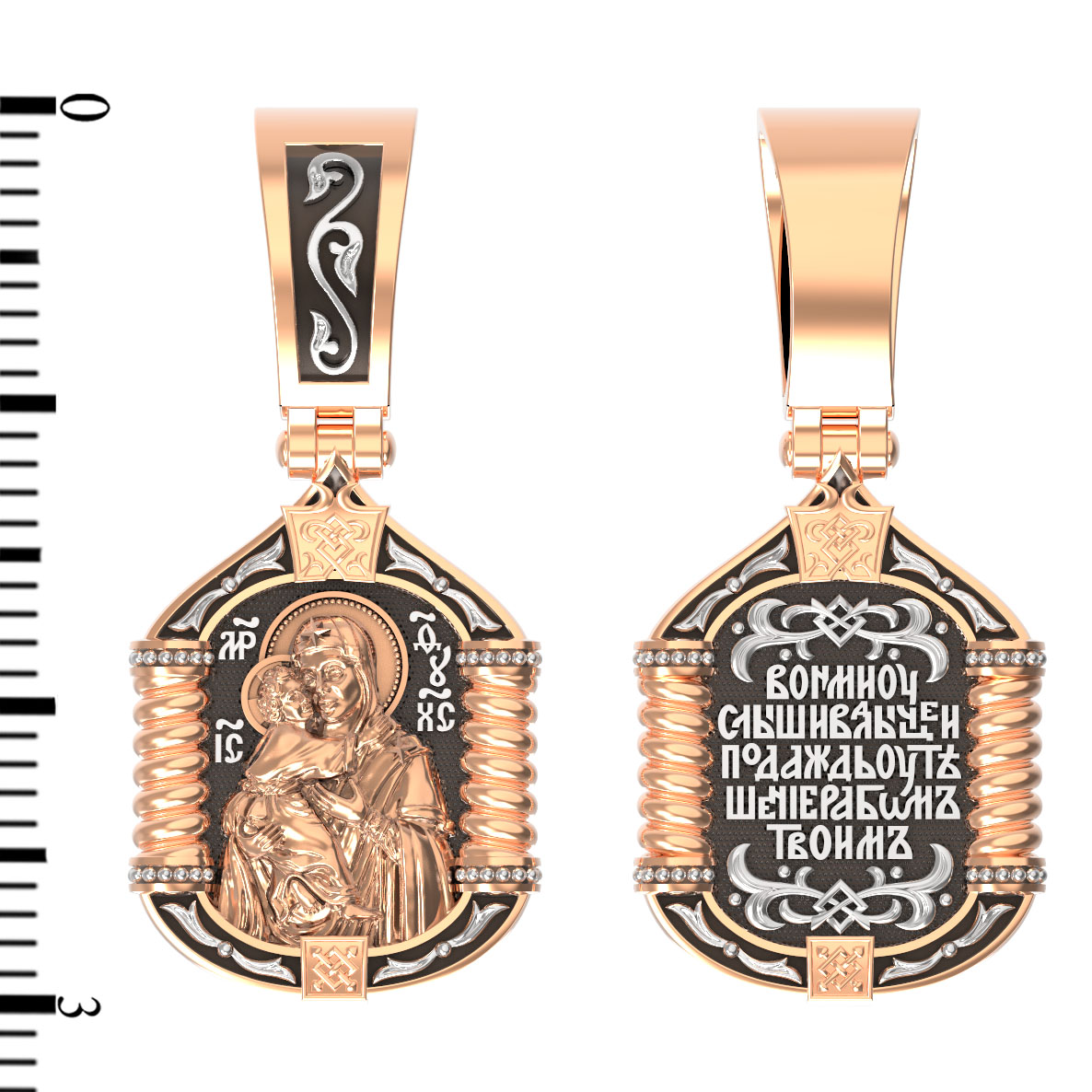 На лицевой стороне образка изображена Владимирская икона Божией Матери.