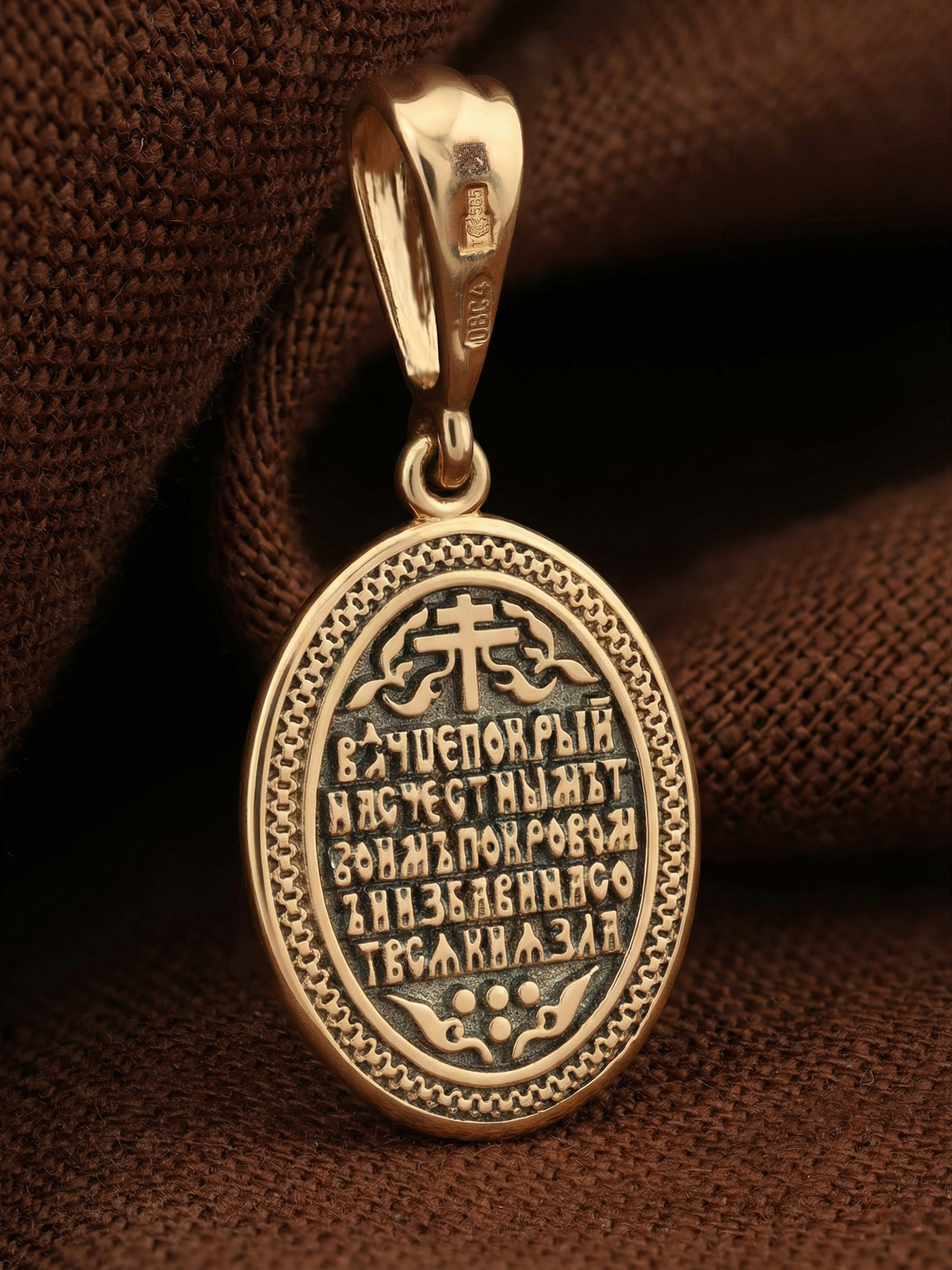 На лицевой части образка изображена икона Покров Пресвятой Богородицы. Праздник Покрова Божией Матери является воспоминанием чуда, которое произошло во Влахнернской церкви 1 (14) октября 910 года: Пресвятая Богородица явилась верующим над алтарем храма и распростерла над ними Свое покрывало. В этот день Божья Матерь открыла людям, что Она является Ходатаицей за них перед Богом. Богородица простирает Свой молитвенный покров над всеми православными христианами и умоляет Сына Своего о даровании вечного спасения каждому человеку.