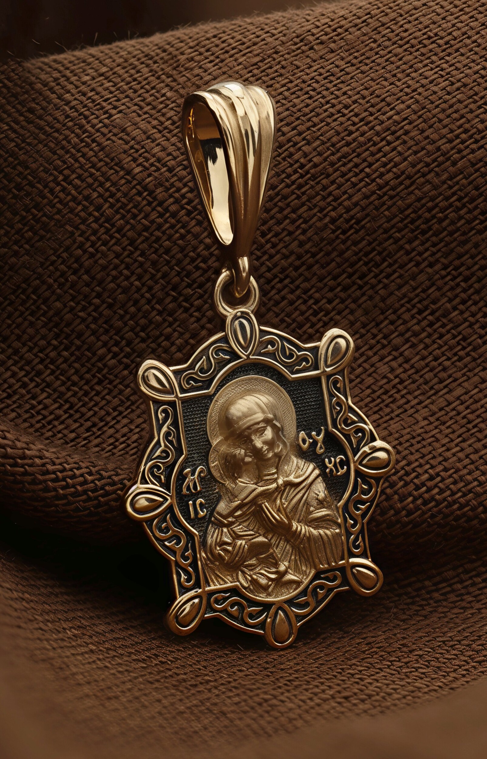 Лицевую сторону возглавляет Владимирская икона Божией Матери — самая великая русская святыня, многие века бывшая олицетворением нашей земли. Перед ней венчались на царство государи, избирались патриархи. Пречистой Богородице Владимирской клялись в верности Отечеству солдаты и за нее умирали на поле брани. Именно на ее защиту более всего уповала Россия в самые страшные периоды своей истории. Владимирская икона Божией Матери, по преданию, была написана на доске трапезного стола из дома Иисуса Христа. На Русь она была привезена в начале XII века и с тех пор почитается как главная святыня нашего Отечества. Перед ней молитвенно просят Богородицу об исцелении от телесных недугов, в частности, заболеваний сердца и сердечнососудистой системы. За помощью к ней обращаются во время бедствий, когда нуждаются в защите от врагов.