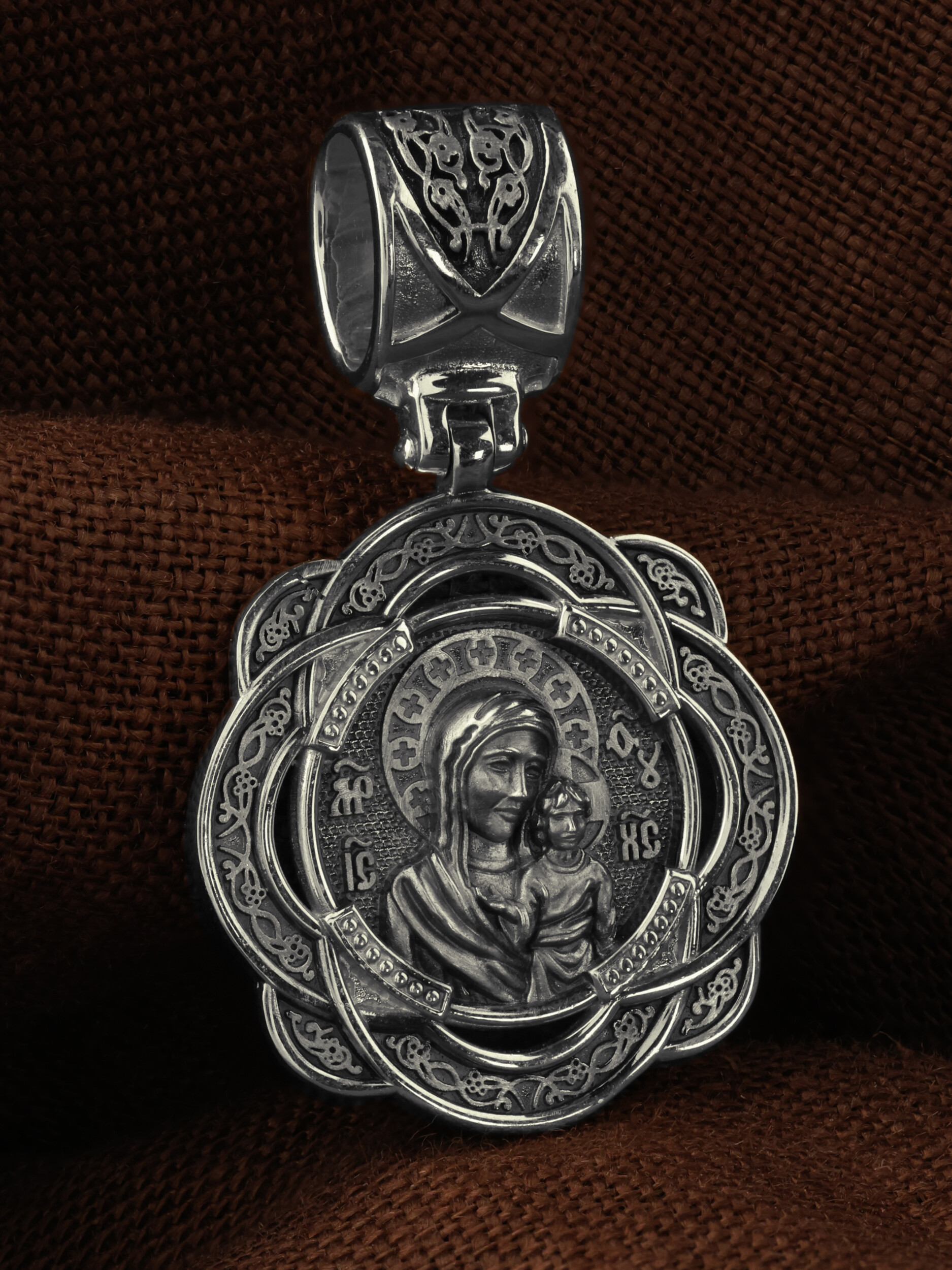 На лицевой части образка изображена Казанская икона Пресвятой Богородицы — одна из самых почитаемых в России чудотворных икон Богородицы. Богословское значение Казанской иконы — указать верующим истинный Путь к спасению, который лежит через Христа. Только Божия Матерь имеет настолько сильное дерзновение к Спасителю, что может ходатайствовать перед Ним за всех верных. Именно этот образ дарится новой повенчанной паре, как хранитель очага и семейная реликвия. Молитва перед Казанской иконой Божьей Матери помогает во всех сложных случаях жизни, в болезнях, во всех печалях, невзгодах, скорбях. Уникальная история появления, чудеса, случившиеся по молитвам православных людей возле образа — все это делает Казанскую Богородицу особенной, среди тысяч других икон.