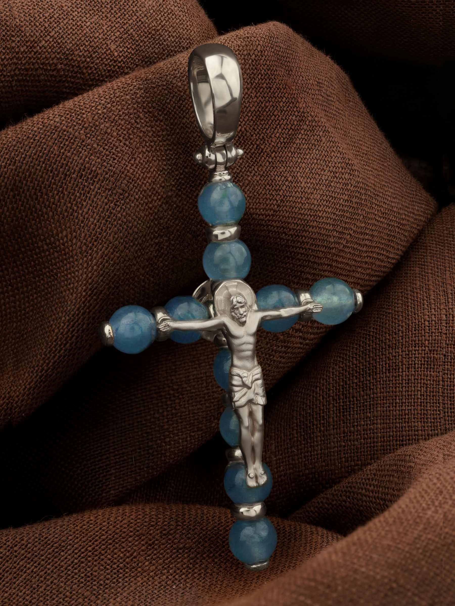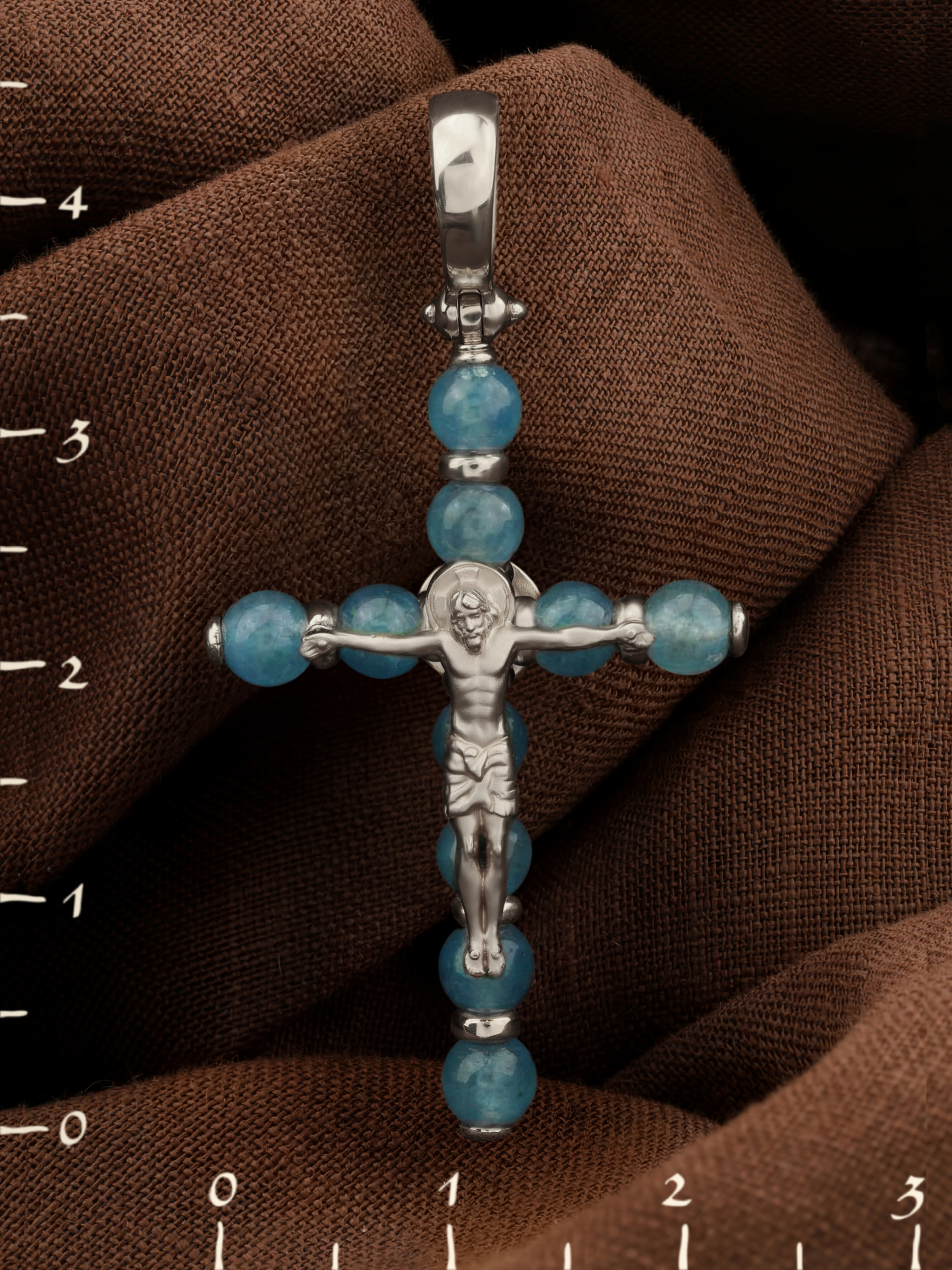 Крест из белого золота c жадеитом