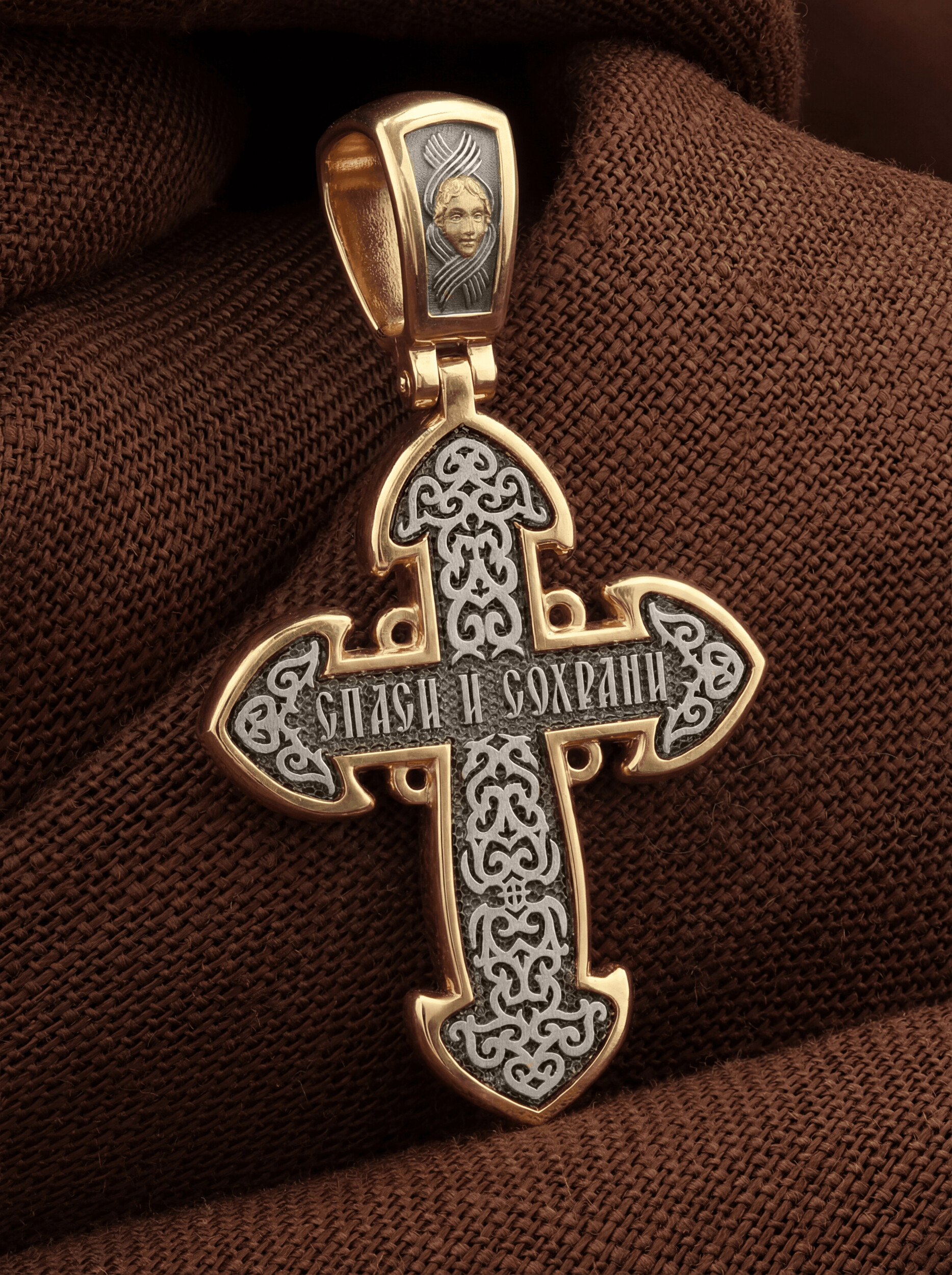 Своими страданиями Христос искупил грехи человечества, умерев и сошествовав во ад, победил сатану, освободил души праведников от вечной смерти и открыл им небесные врата рая. Жертва Христа сделала возможным спасение для каждого человека. Поэтому на обороте данного креста в цветочном орнаменте написано: «Спаси и сохрани».