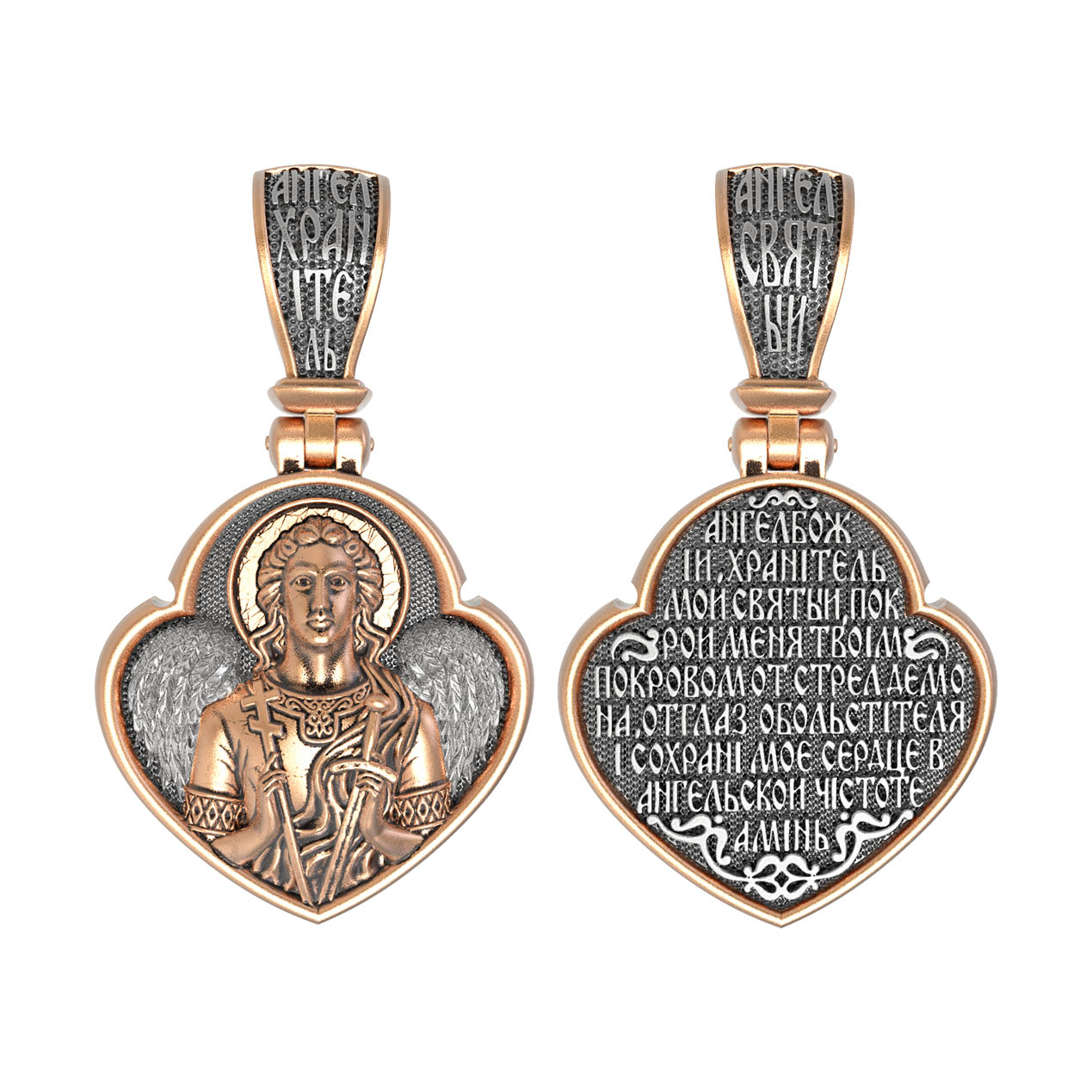 На лицевой стороне образка изображен Святой Ангел-Хранитель в виде прекрасного, светозарного юноши держащего в правой руке крест, а в левой — мечь. Ангел-Хранитель — это Ангел приставляемый Богом к человеку при крещении для охраны и помощи в добрых делах. Он невидимо находится при человеке на протяжении всей его жизни, если человек сохраняет в себе любовь к Богу и истинную веру перед Ним. Ангел-Xранитель делают для нас все, что служит к истинному нашему благу и спасению. Невидимо пребывая при нас постоянно, он, руководствуя нас ко спасению, не только по нашему желанию таинственно наставляет нас на все доброе и полезное, не только возносит наши молитвы к Богу, но еще и сам от себя охраняют и защищают нас от врагов видимых и невидимых и ходатайствует за нас пред Богом.