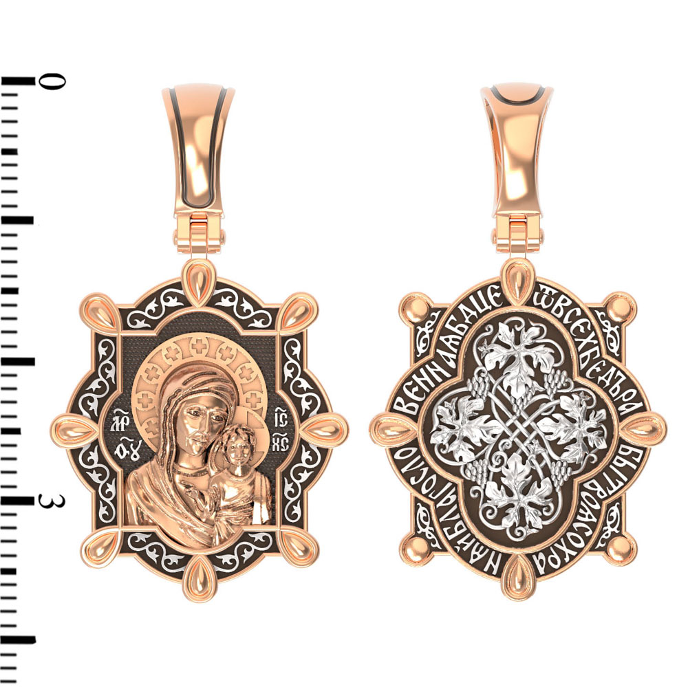 На лицевой части образка изображена Казанская икона Пресвятой Богородицы — одна из самых почитаемых в России чудотворных икон Богородицы. Богословское значение Казанской иконы — указать верующим истинный Путь к спасению, который лежит через Христа. Только Божия Матерь имеет настолько сильное дерзновение к Спасителю, что может ходатайствовать перед Ним за всех верных. Именно этот образ дарится новой повенчанной паре, как хранитель очага и семейная реликвия. Молитва перед Казанской иконой Божьей Матери помогает во всех сложных случаях жизни, в болезнях, во всех печалях, невзгодах, скорбях. Уникальная история появления, чудеса, случившиеся по молитвам православных людей возле образа — все это делает Казанскую Богородицу особенной, среди тысяч других икон.