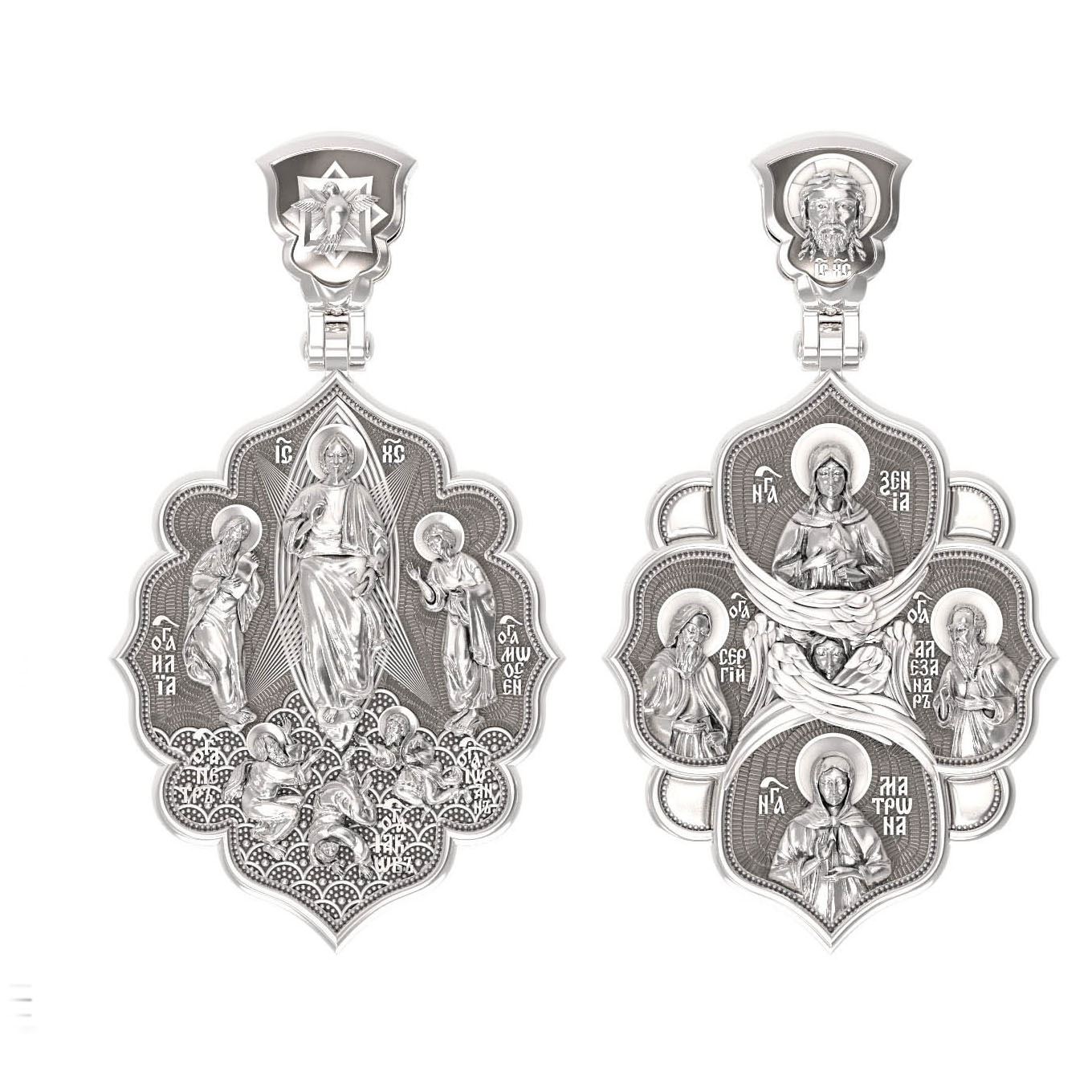 На лицевой стороне образка изображена икона «Преображения Господня». Преображение — одно из немногих Евангельских событий, которое по канону можно изображать не только там, где оно реально происходило. Преображение Господне на иконах можно увидеть на фоне посвященных ему монастырей и храмов. Это объясняется тем, что каждый христианский храм является духовным Фавором, где в церковных таинствах и молитве душа верующих приближается к своему преображению. Образ являет Господа Иисуса Христа в тот момент, когда Он предстал трем Своим ученикам: Петру, Иакову и Иоанну Богослову. Пророки Моисей и Илия предстояли рядом и беседовали с Ним. Апостолы едва могли вынести бесконечную радость, которая охватила их в присутствии Бога. Когда же на гору спустилось облако и раздался глас Божий: «Сей есть Сын Мой Возлюбленный; Его слушайте», апостолы в сильном страхе пали на землю (Лк. 9:35). На иконах «Преображение Господне» они так и изображаются — лежащими у ног Христа. Во главе образка изображен парящий голубь — символ Святого Духа и Его благодати.