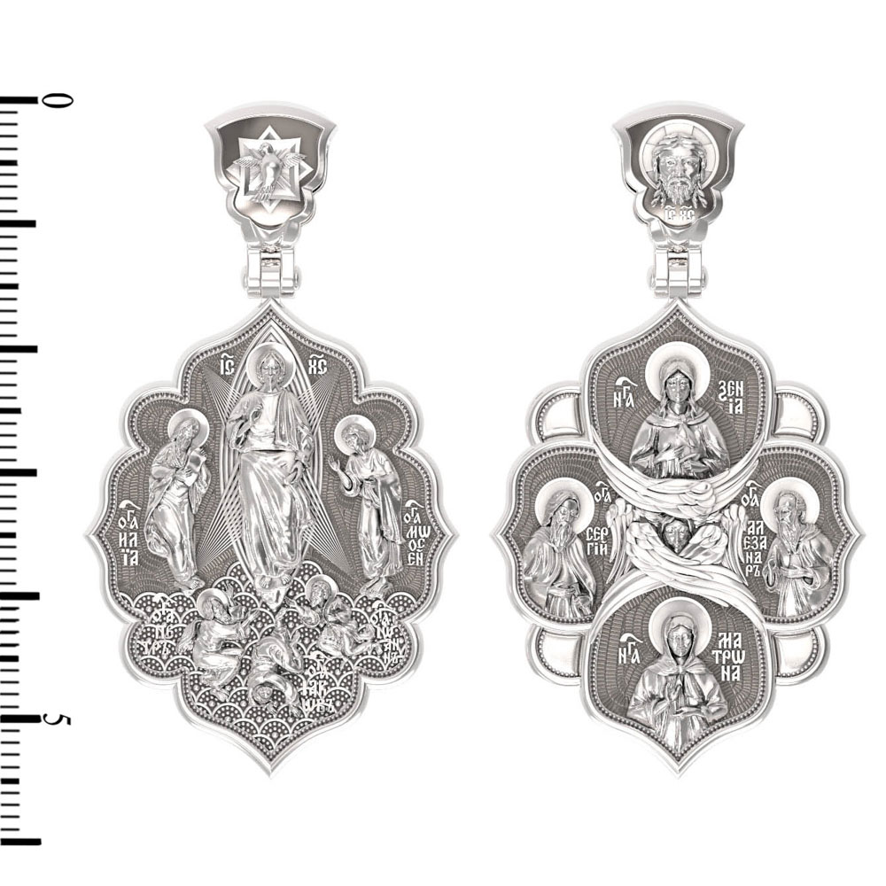 Справа от Серафима изображен преподобный. Александр Свирский. Преподобный Александр Свирский — великий русский святой. Прославился многими чудесами, и один из немногих святых сподобился явления Святой Троицы. Вверху образка изображена блаженная Ксения Петербургская Она прославилась своим подвигом юродства ради Христа. Святая почитается как скорая помощница в устроении семейного счастья, помогает при болезнях детей и близких.