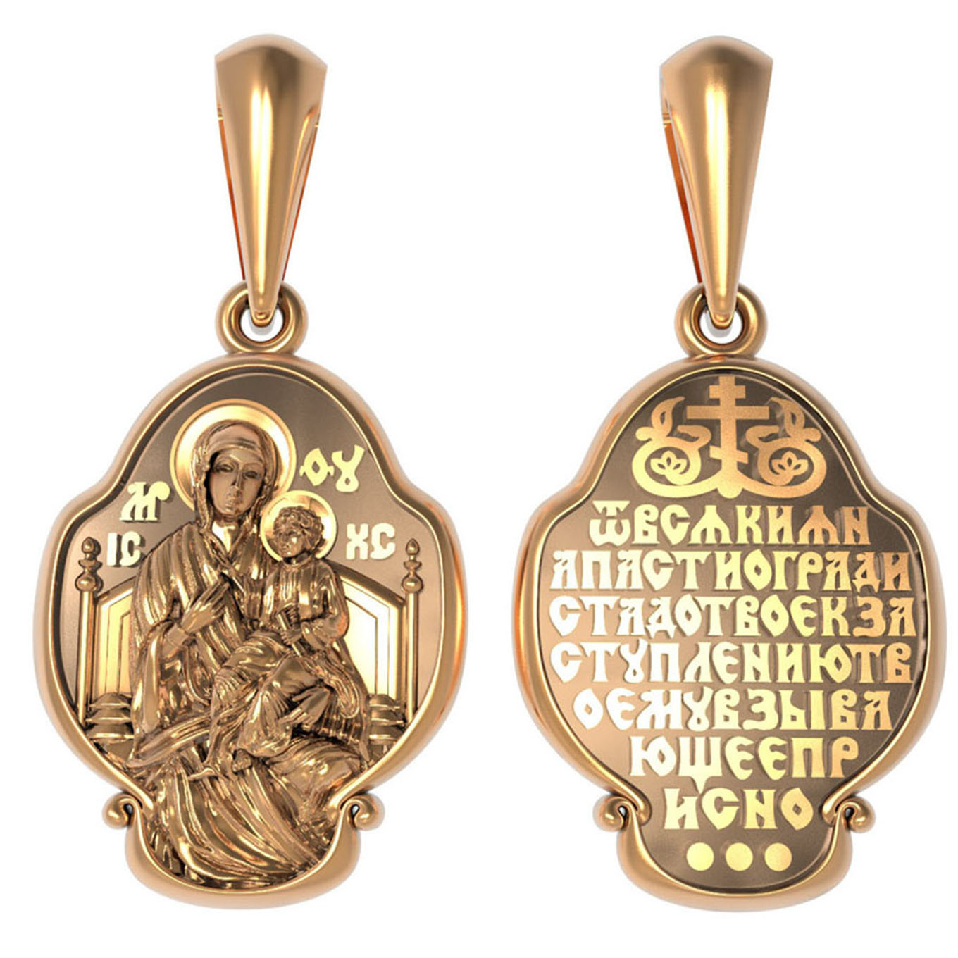 На обороте образка написана молитва Богородице в честь Ее иконы «Всецарица» (Пантанасса): «От всякия напасти огради стадо Твое, к заступлению Твоему взывающее присно».