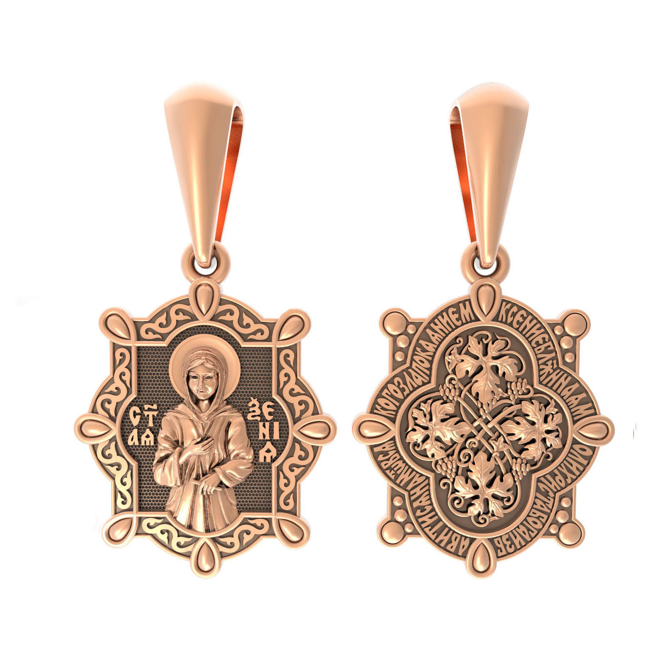 На лицевой стороне образка изображена Святая блаженная Ксения Петербургская, в миру Ксения Григорьевна Петрова.
