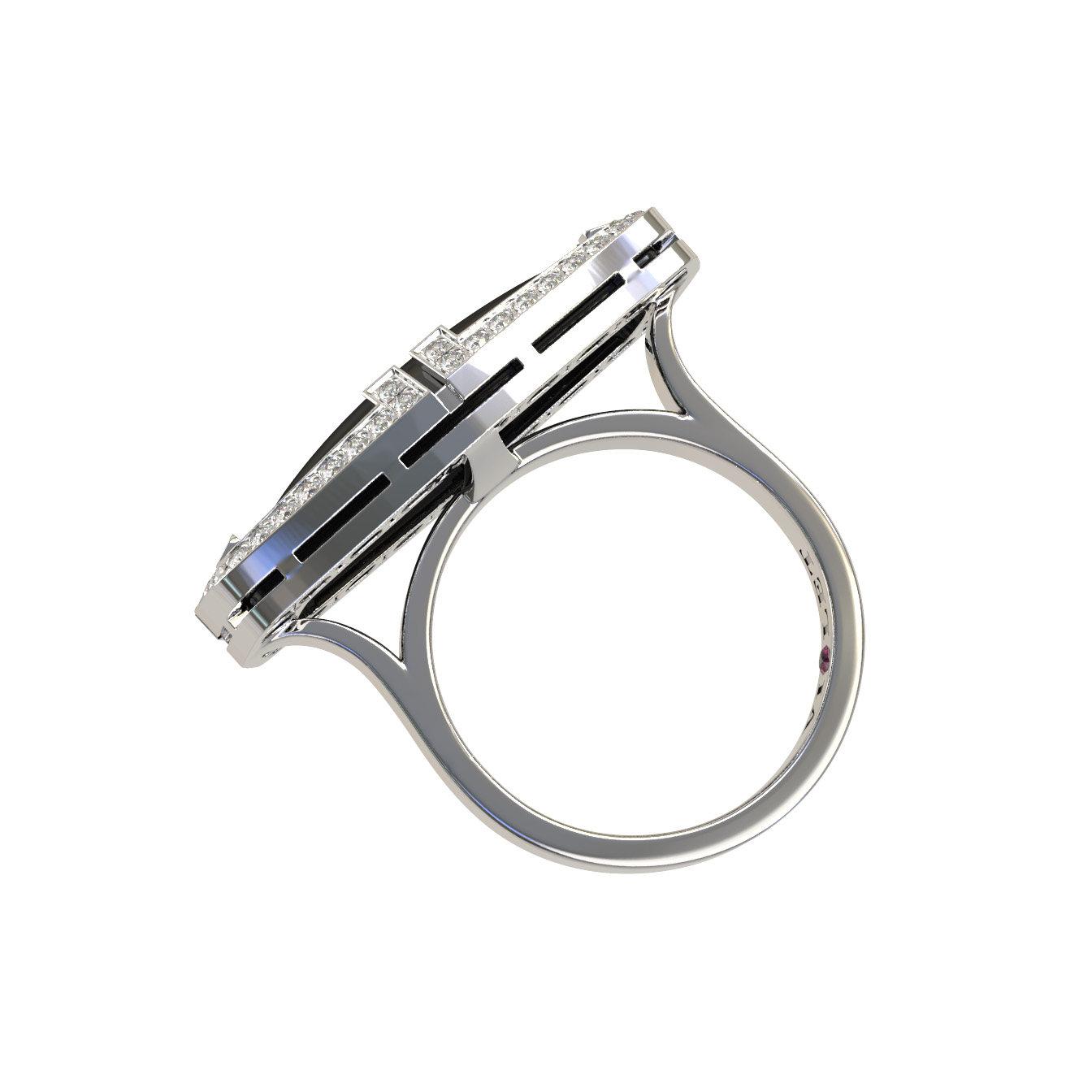 Кольцо из белого золота c бриллиантами, рубином и ониксом