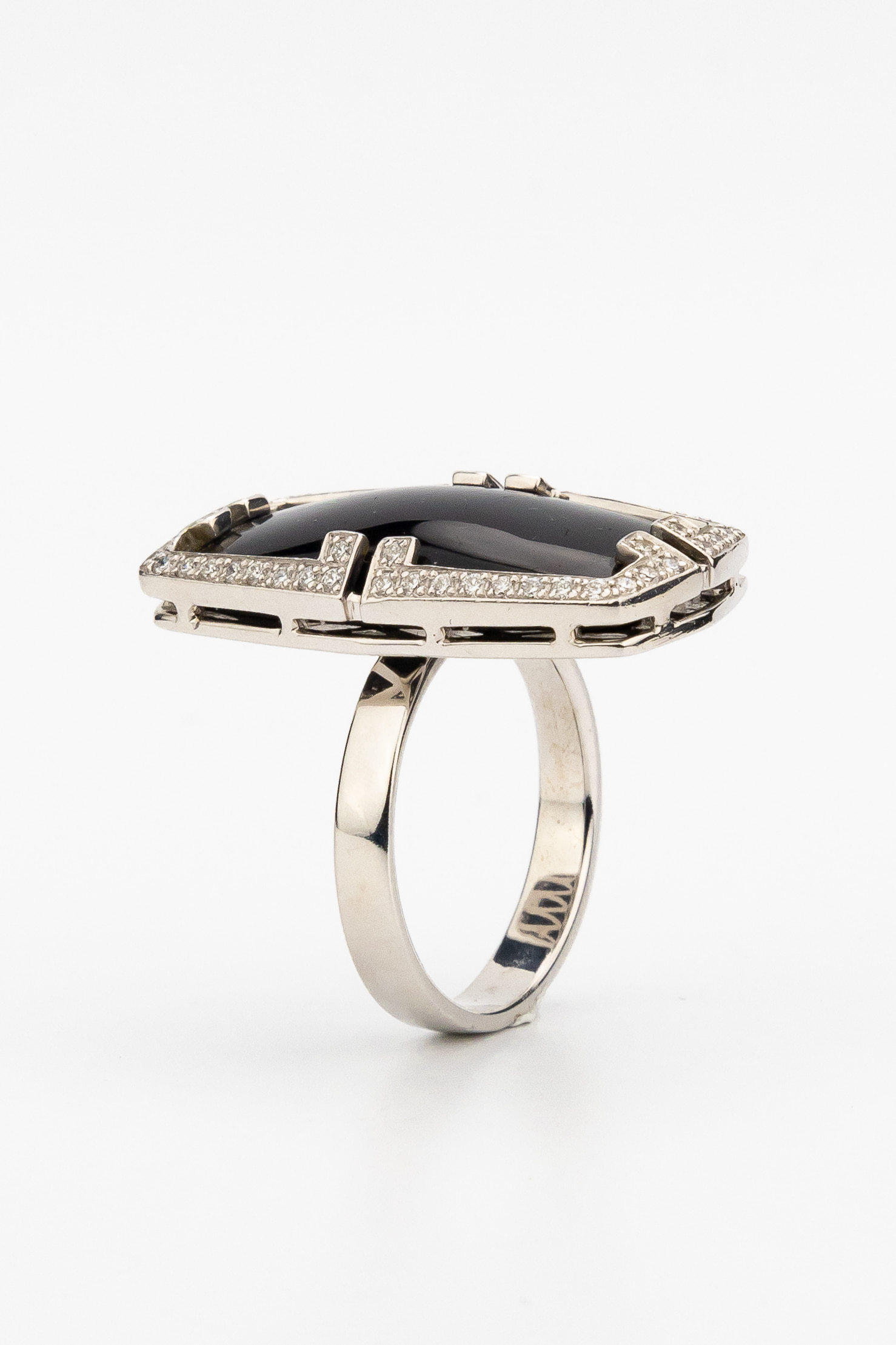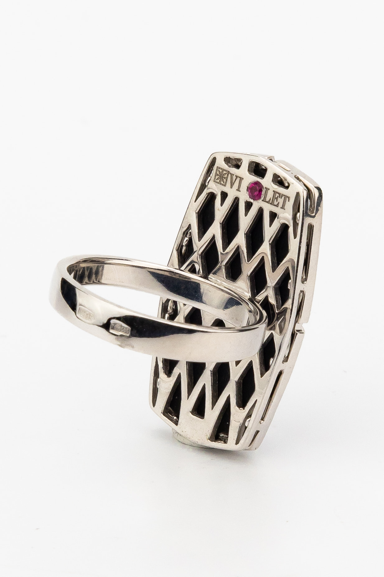 Кольцо из белого золота c бриллиантами, рубином и ониксом