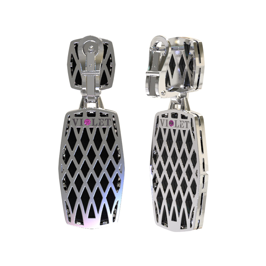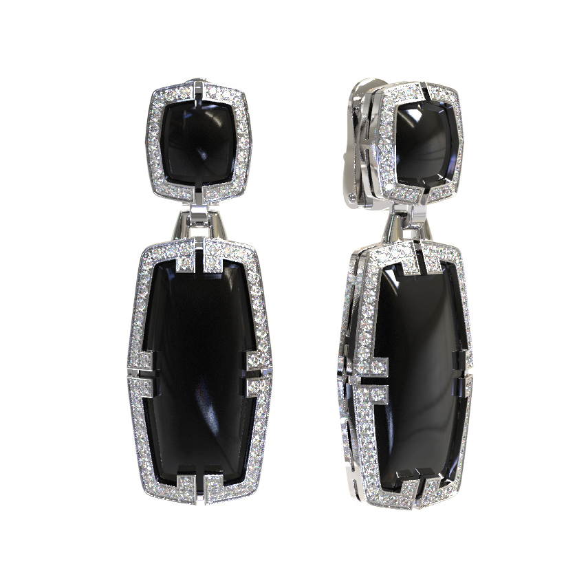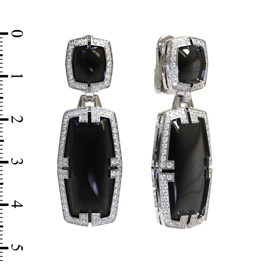 Серьги из белого золота c бриллиантами, рубином и ониксом