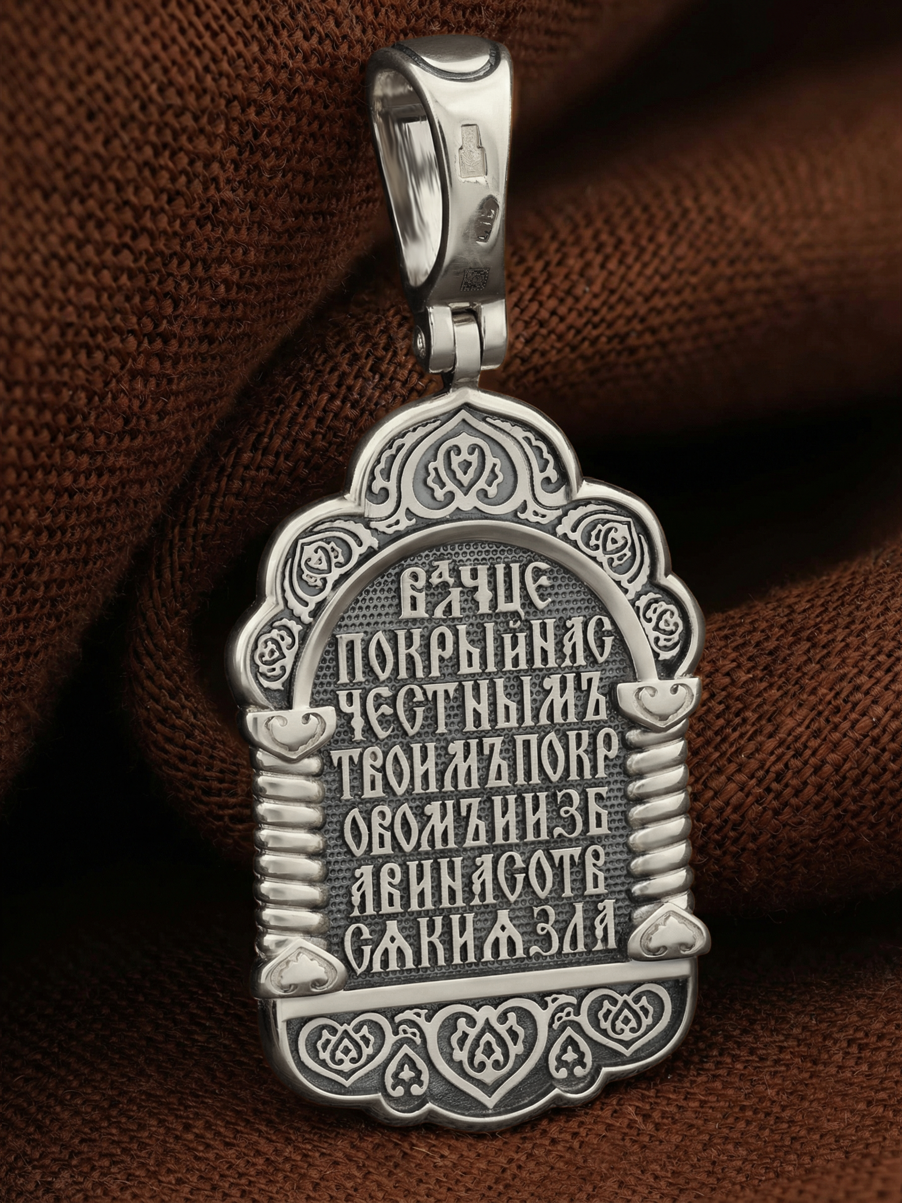 На обороте образка написано: «Владычице, покрой нас Честным Твоим покровом и избави нас от всякия зла».