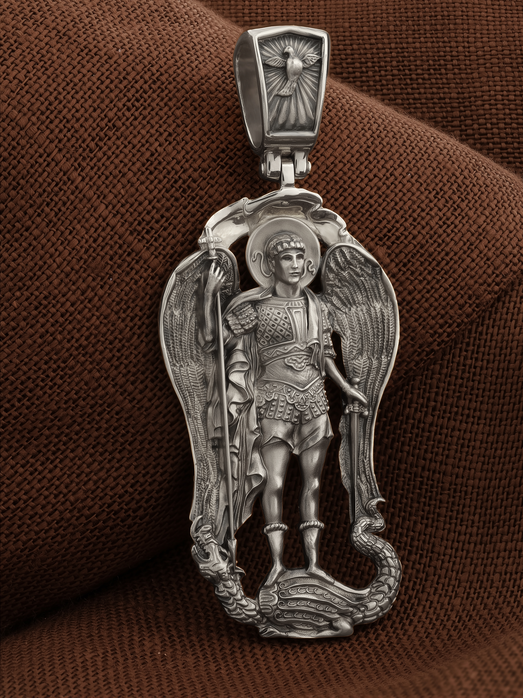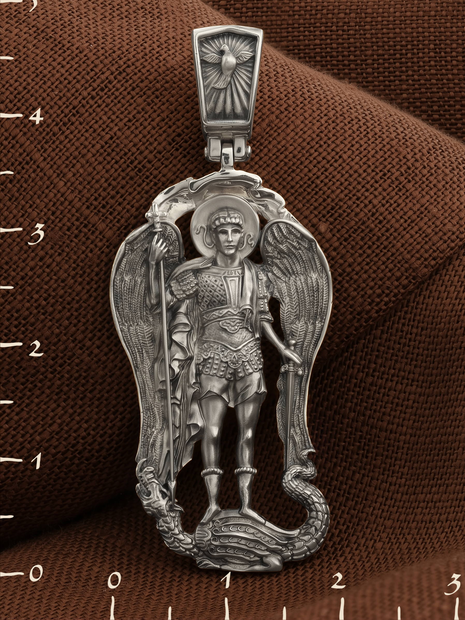 На обороте образка написана молитва Архангелу Михаилу: «Святой Архангел Божий Михаил! Ты наш защитник и хранитель от лукавого.»