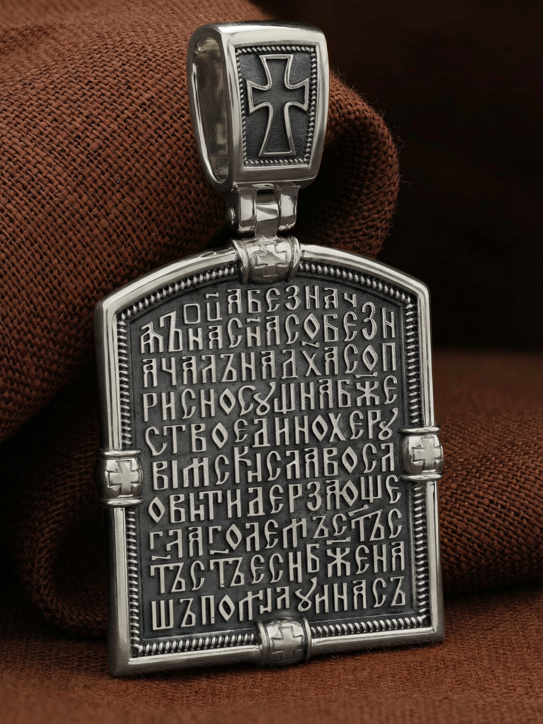 На обороте образка написана молитва: «Отца безначальна, Сына собезначальна, Духа соприносущна, Божество едино, херувимски славословити дерзающе глаголем: свят, свят, свят еси Боже наш, помилуй нас.»