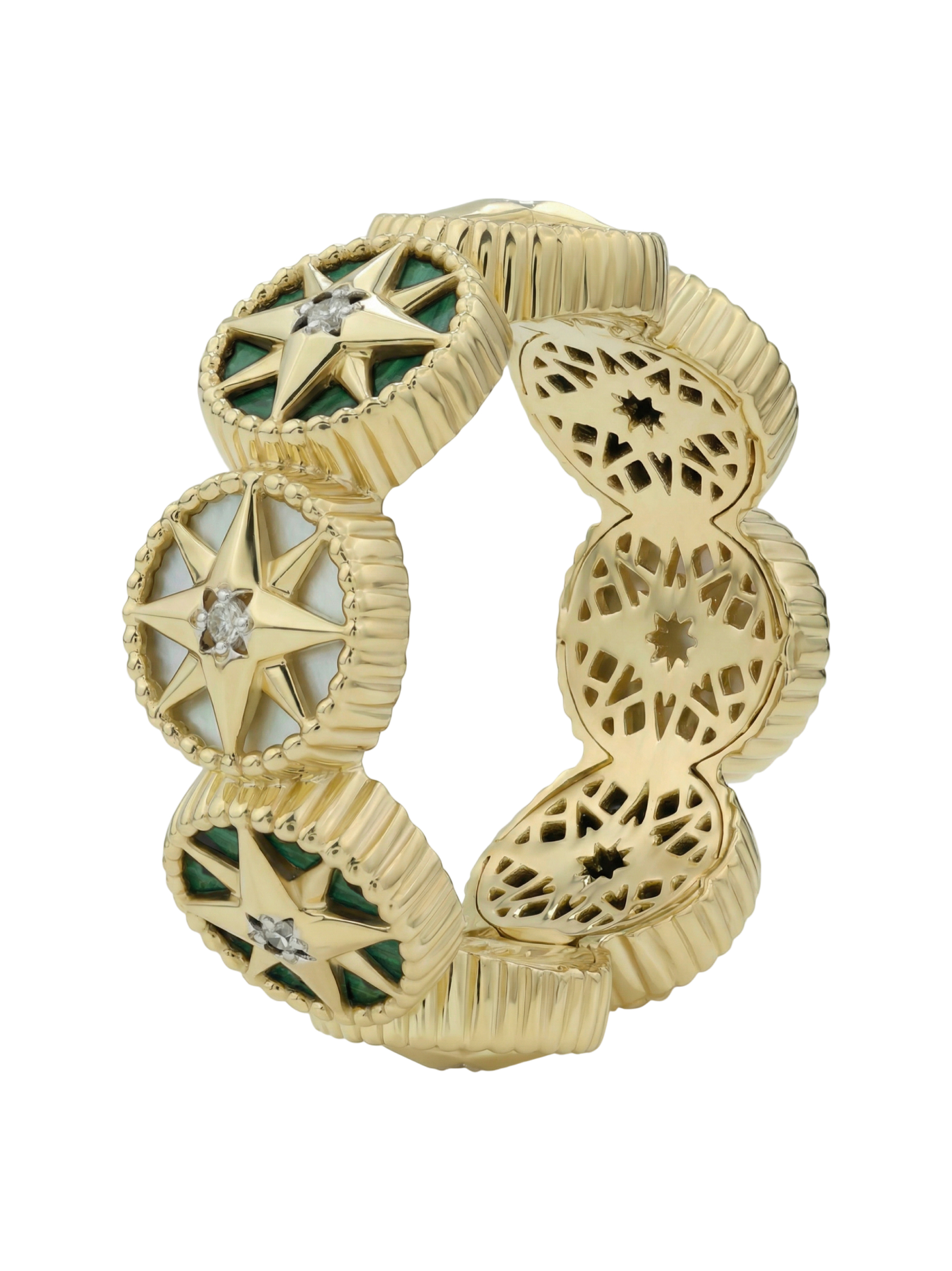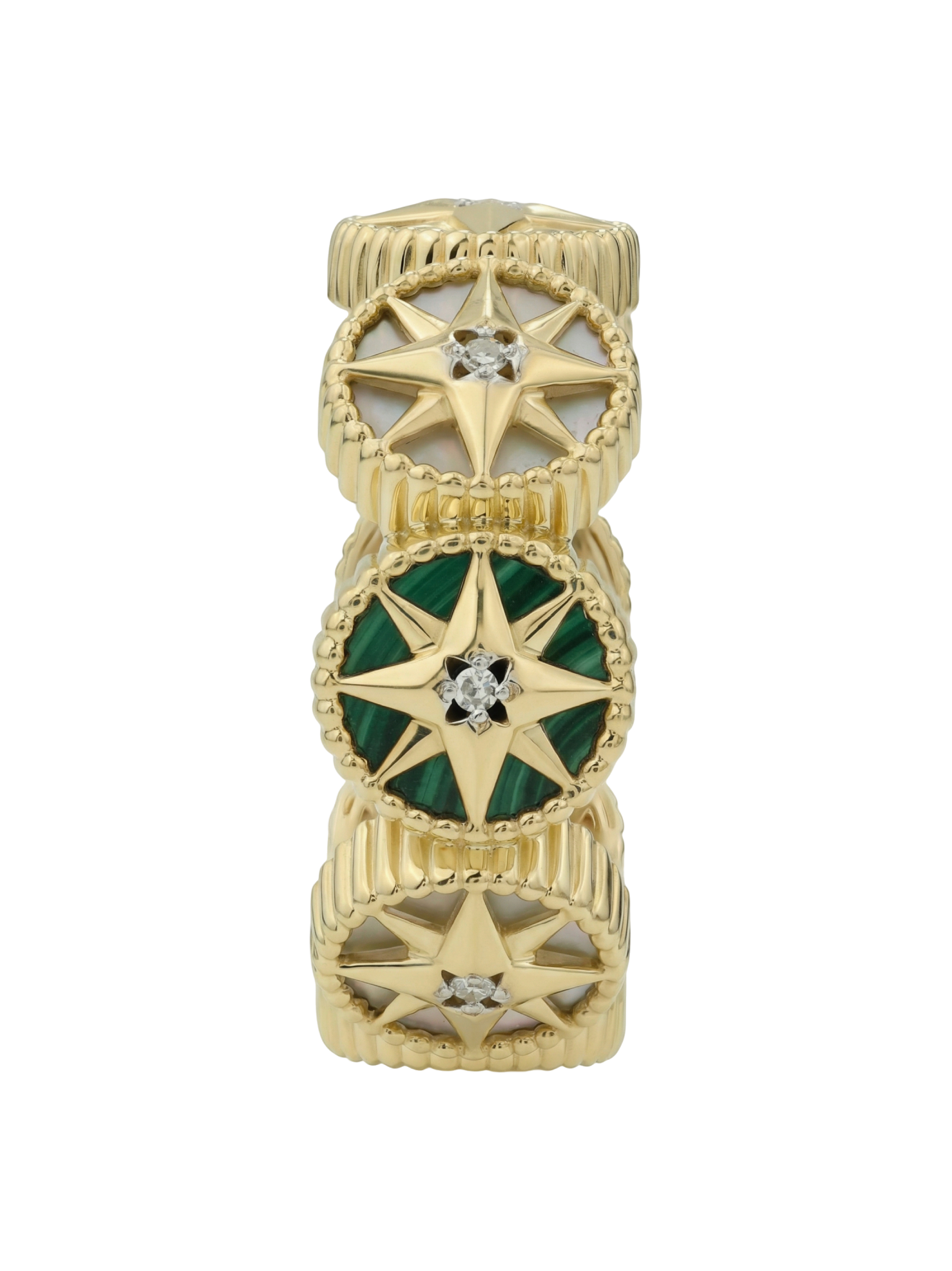 Кольцо из лимонного золота c бриллиантами, малахитом и перламутром