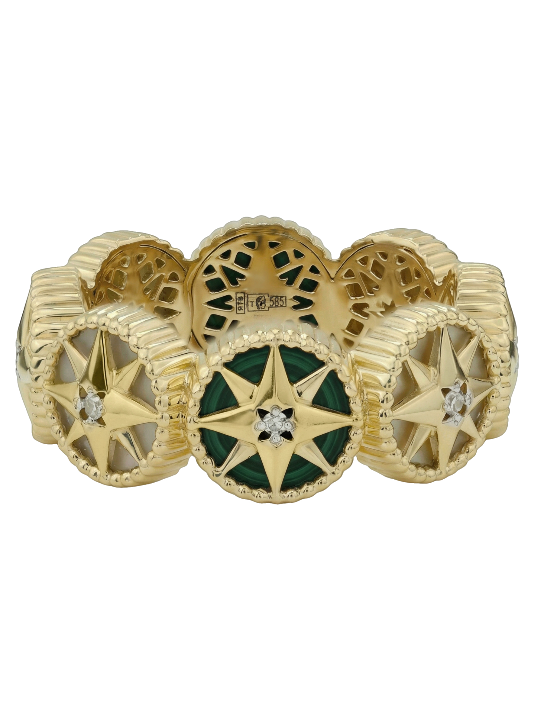 Кольцо из лимонного золота c бриллиантами, малахитом и перламутром
