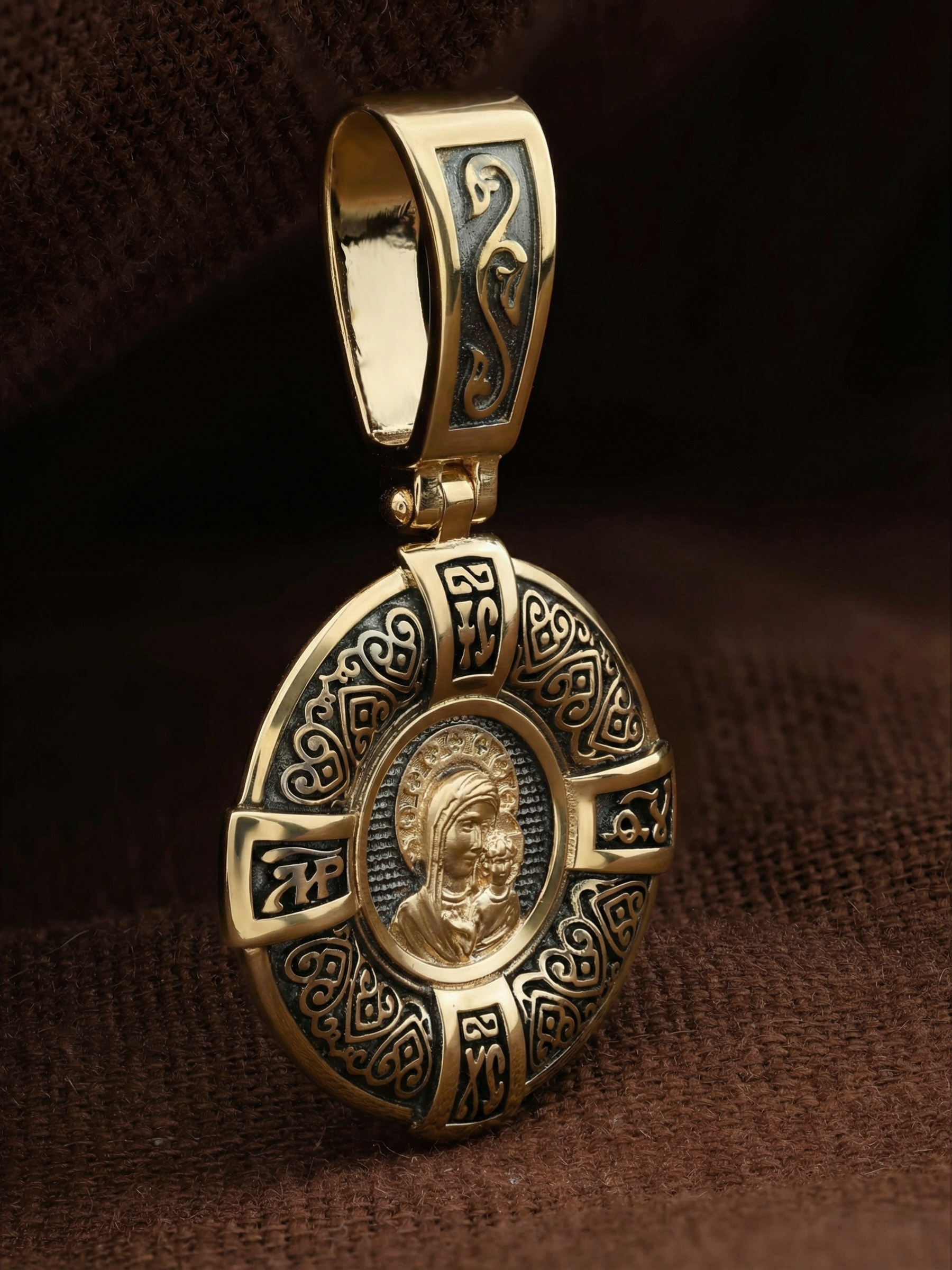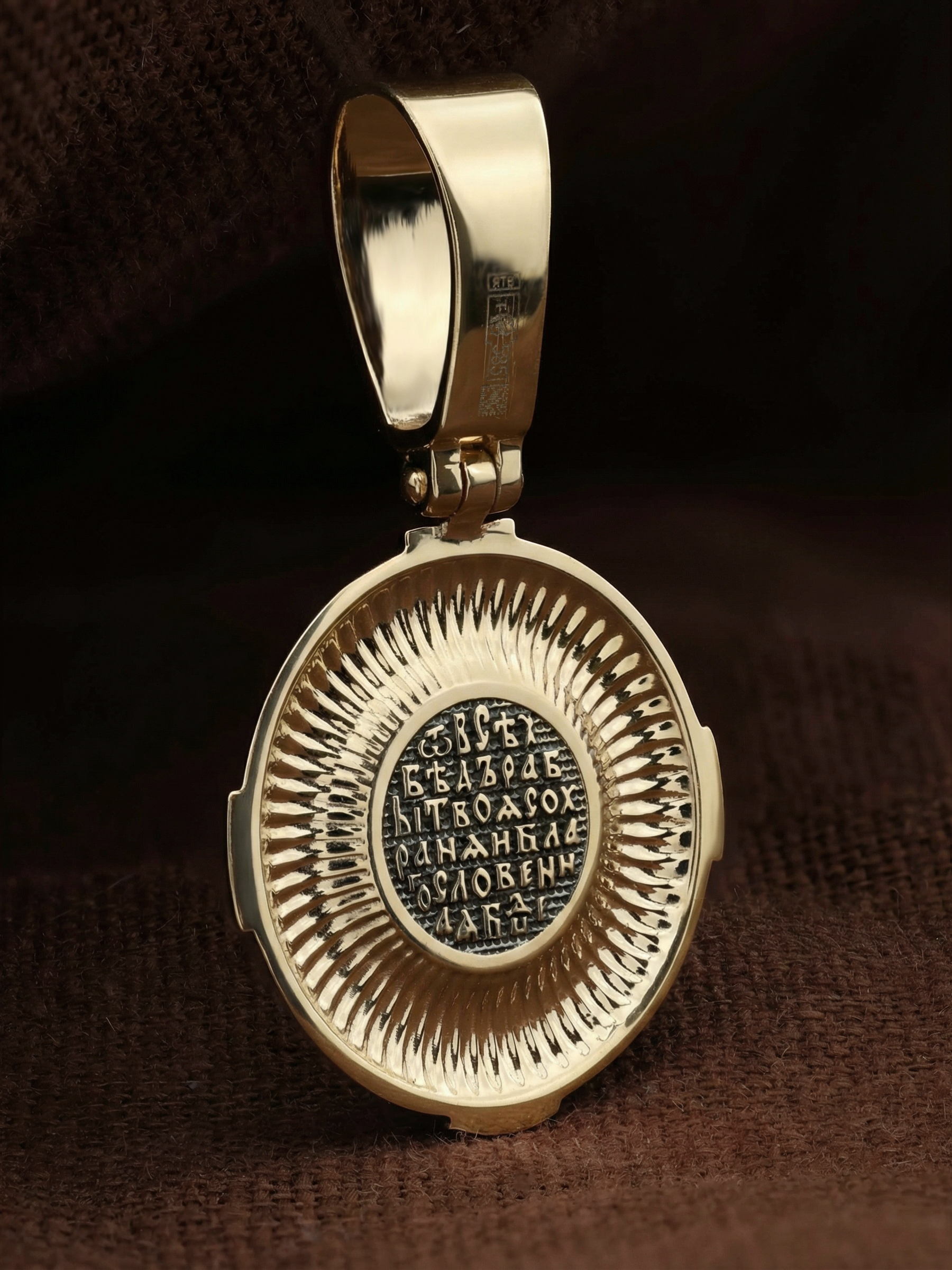 На лицевой части образка изображена Казанская икона Пресвятой Богородицы — одна из самых почитаемых в России чудотворных икон Богородицы. Богословское значение Казанской иконы — указать верующим истинный Путь к спасению, который лежит через Христа. Только Божия Матерь имеет настолько сильное дерзновение к Спасителю, что может ходатайствовать перед Ним за всех верных. Именно этот образ дарится новой повенчанной паре, как хранитель очага и семейная реликвия. Молитва перед Казанской иконой Божьей Матери помогает во всех сложных случаях жизни, в болезнях, во всех печалях, невзгодах, скорбях. Уникальная история появления, чудеса, случившиеся по молитвам православных людей возле образа — все это делает Казанскую Богородицу особенной, среди тысяч других икон.