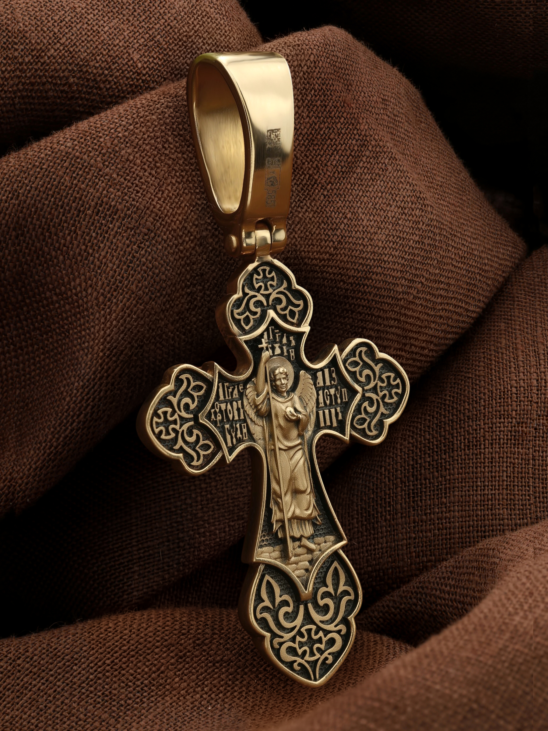 Основой композиции оборотной стороны является ростовое изображение Ангела Хранителя. Ангел, который дается каждому человеку в Крещении для попечения и защиты его души. Ангел Хранитель неотступно находится рядом с человеком, помогая, оберегая и наставляя его, а после смерти сопровождает его душу через мытарства. Рядом с изображением Ангела написана молитва: «Ангеле Христов, буди ми заступник».