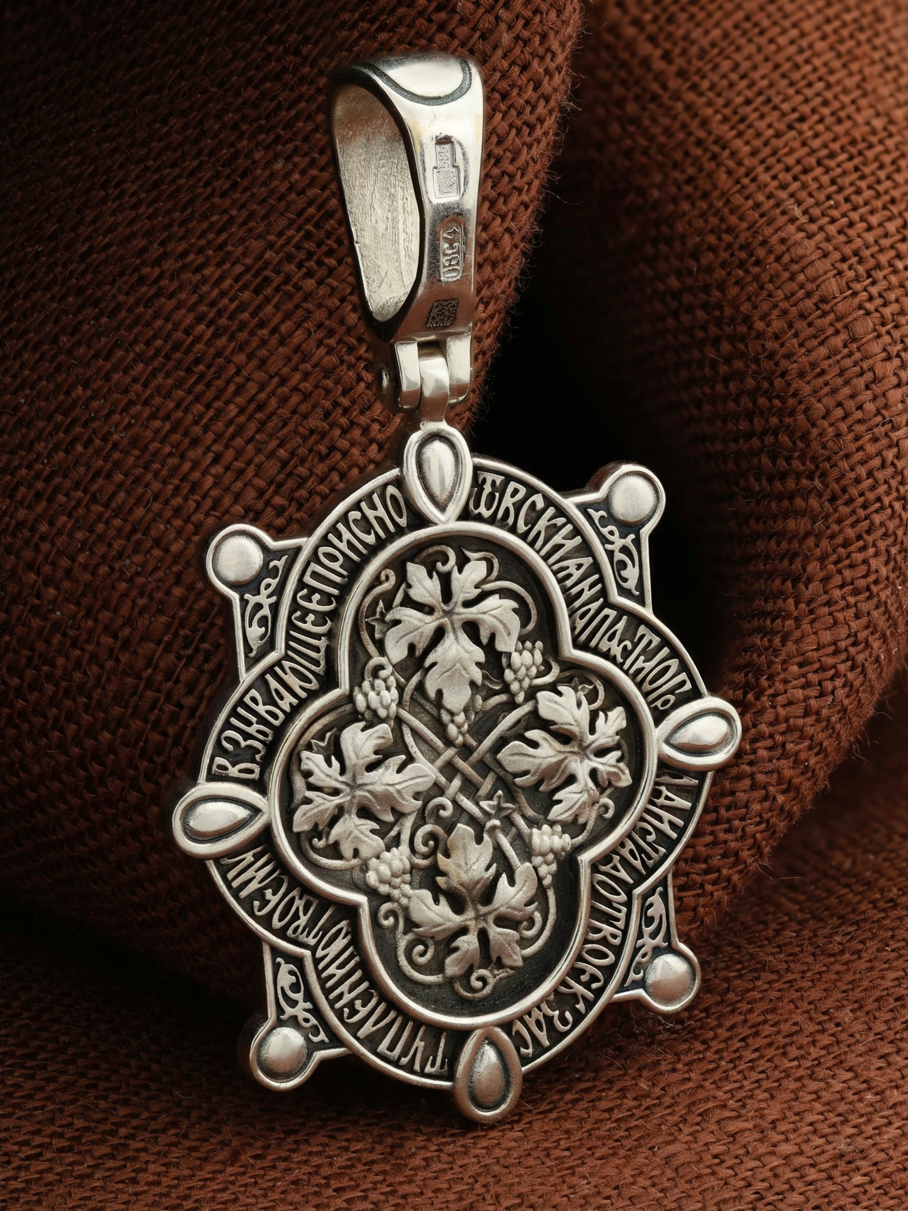 На обороте образка написана молитва Богородице в честь Ее иконы «Всецарица» (Пантанасса): «От всякия напасти огради стадо Твое, к заступлению Твоему взывающее присно».