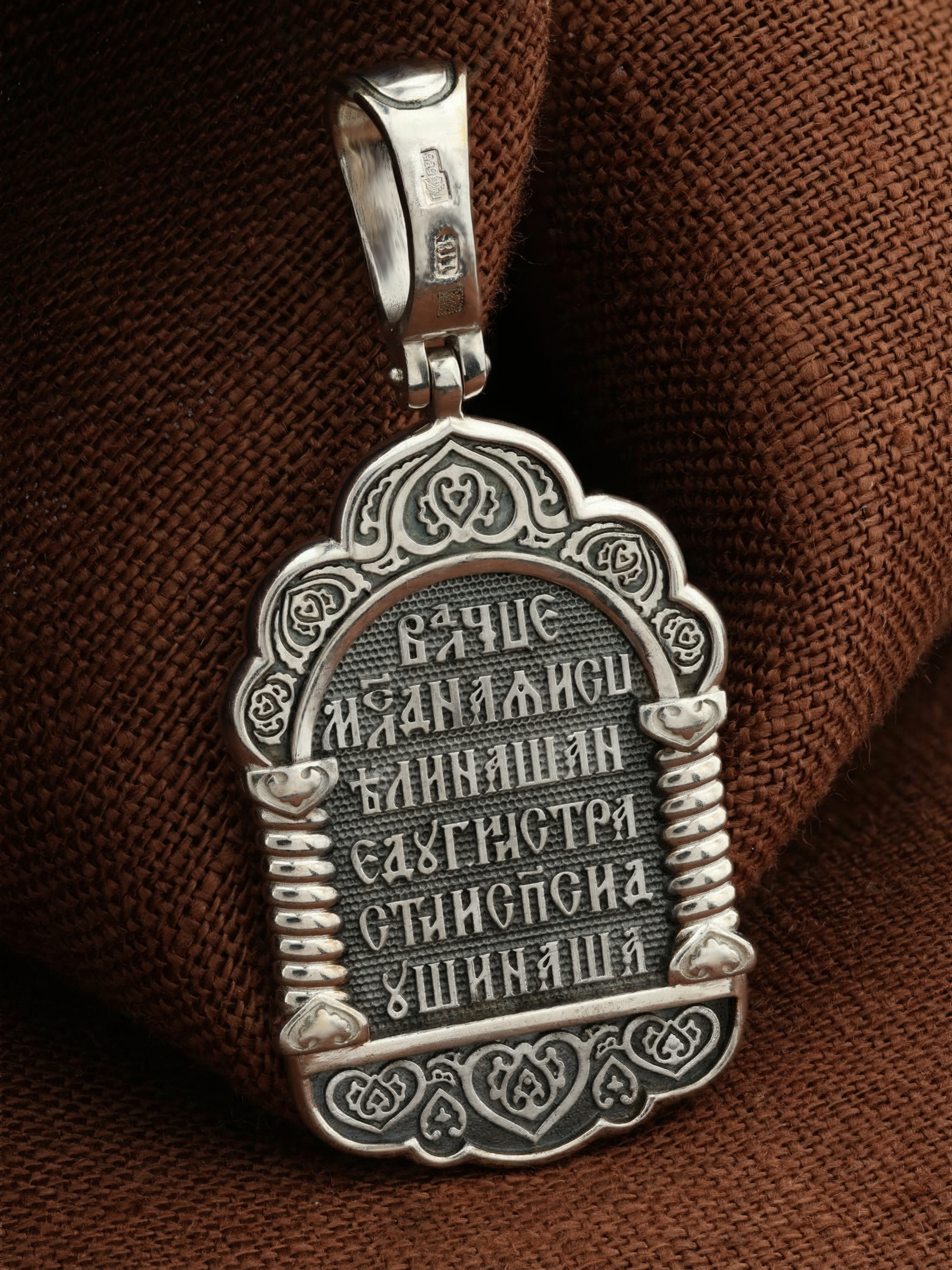 На лицевой части образка изображена икона Божией Матери «Неупиваемая чаша». Икона славится помощью в исцелении зависимостей, помогает людям обрести свободу от греховных страстей.