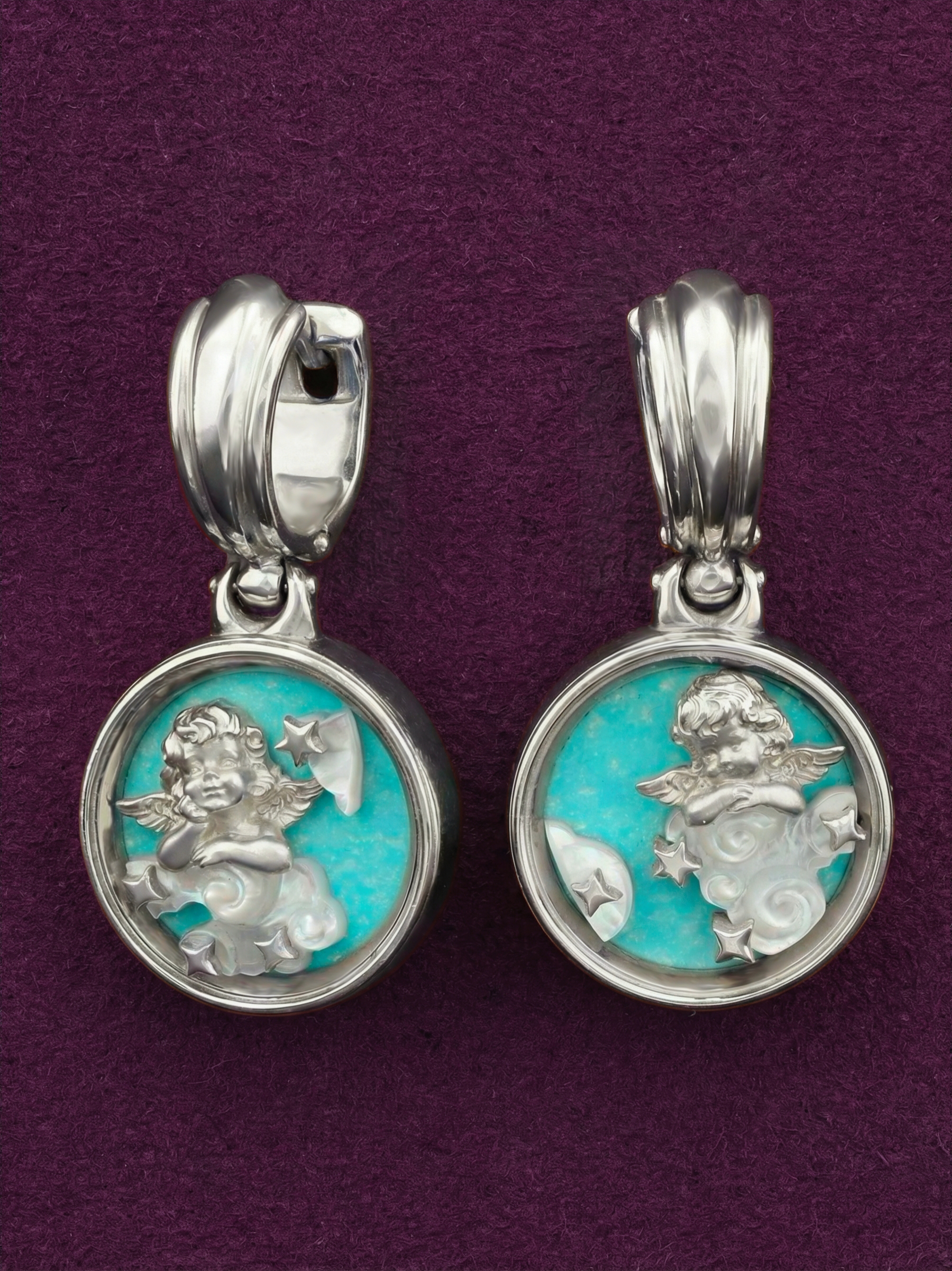 Серьги из белого золота c бирюзой и перламутром