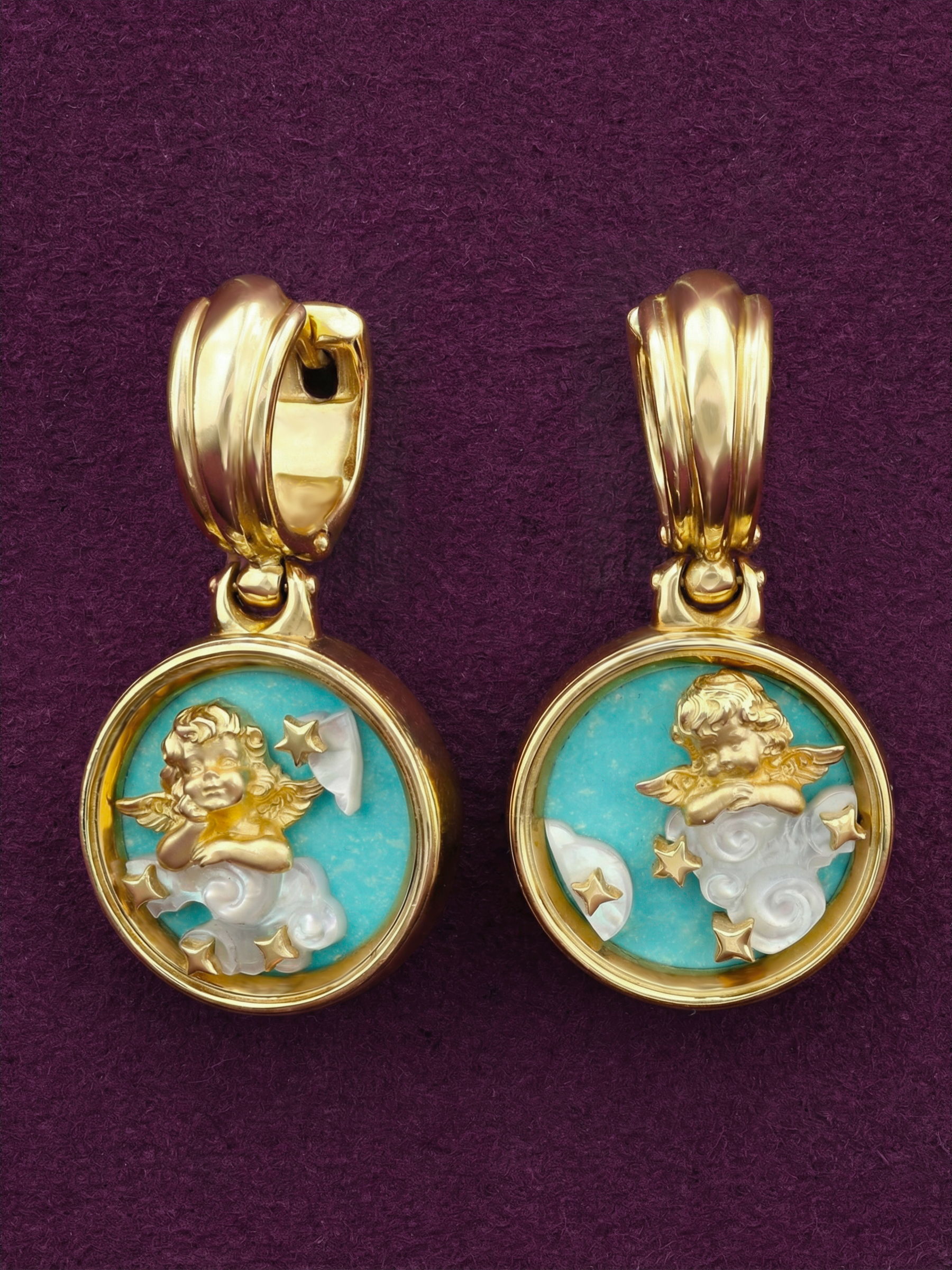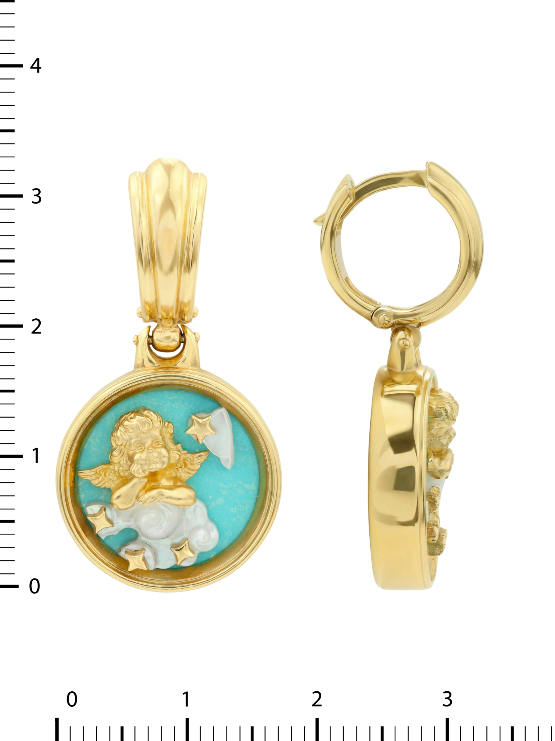 Серьги из лимонного золота c бирюзой и перламутром