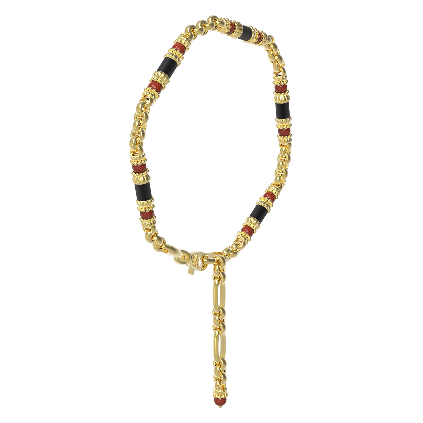 Цепь из лимонного золота c ониксом и кораллом