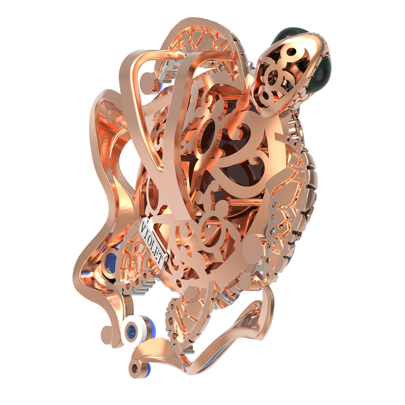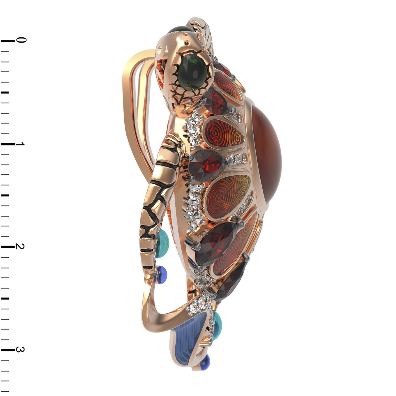 Подвеска из золота c эмаль, фианитом, гранатом и янтарём