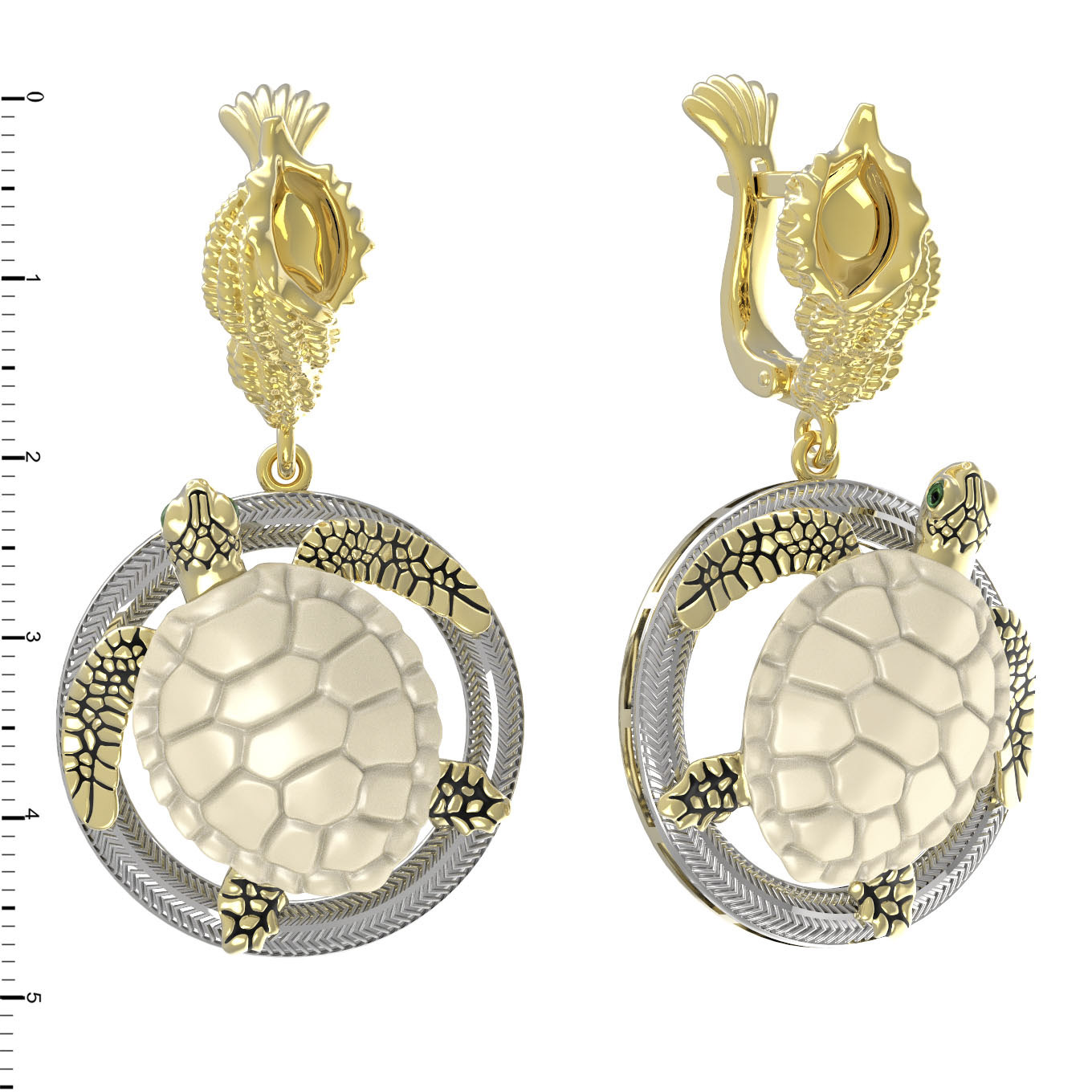 Серьги из лимонного золота c эмаль и бивнем мамонта