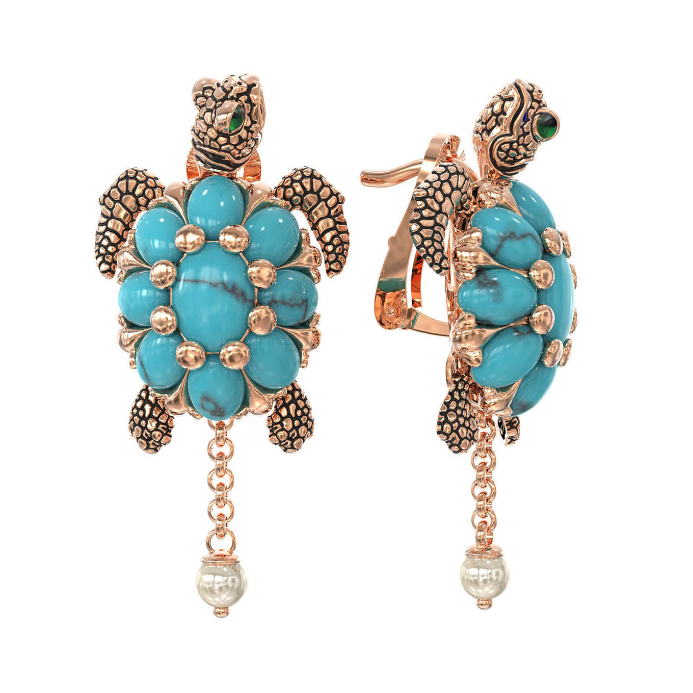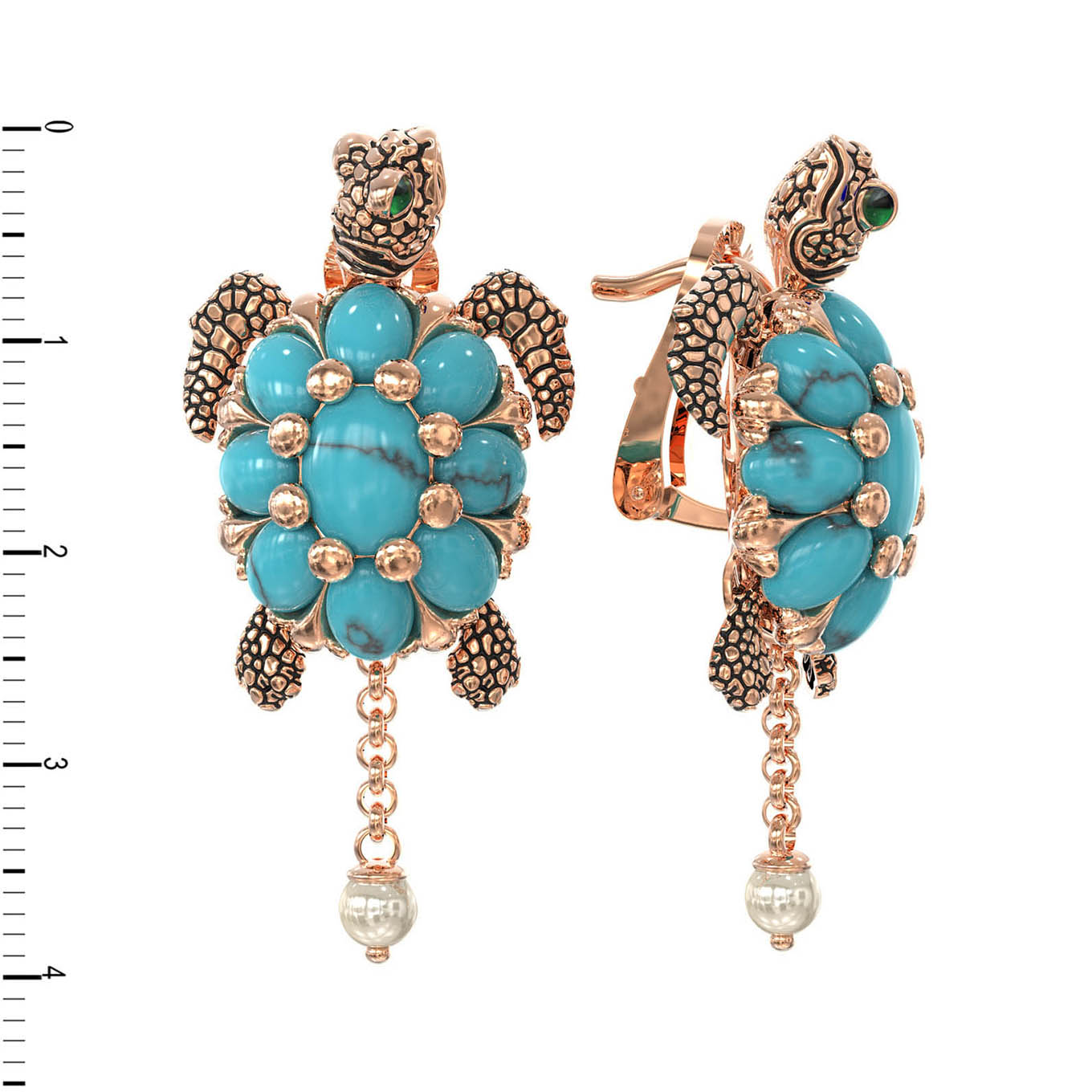 Серьги из золота c эмаль, жемчугом и бирюзой