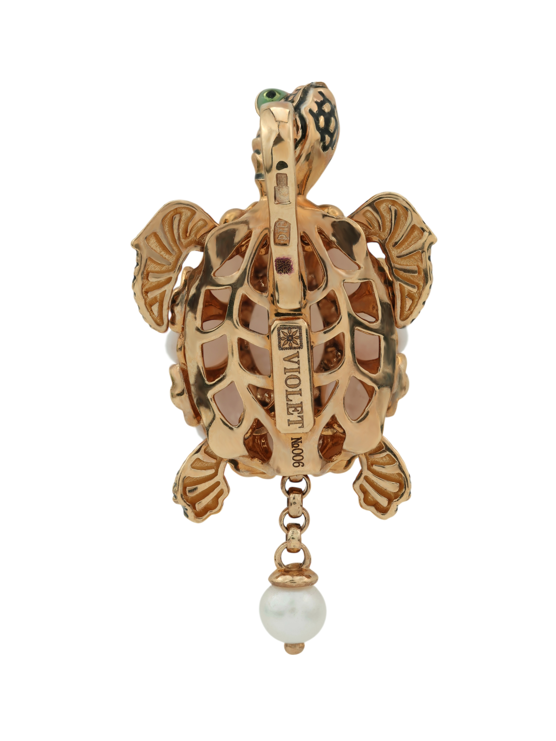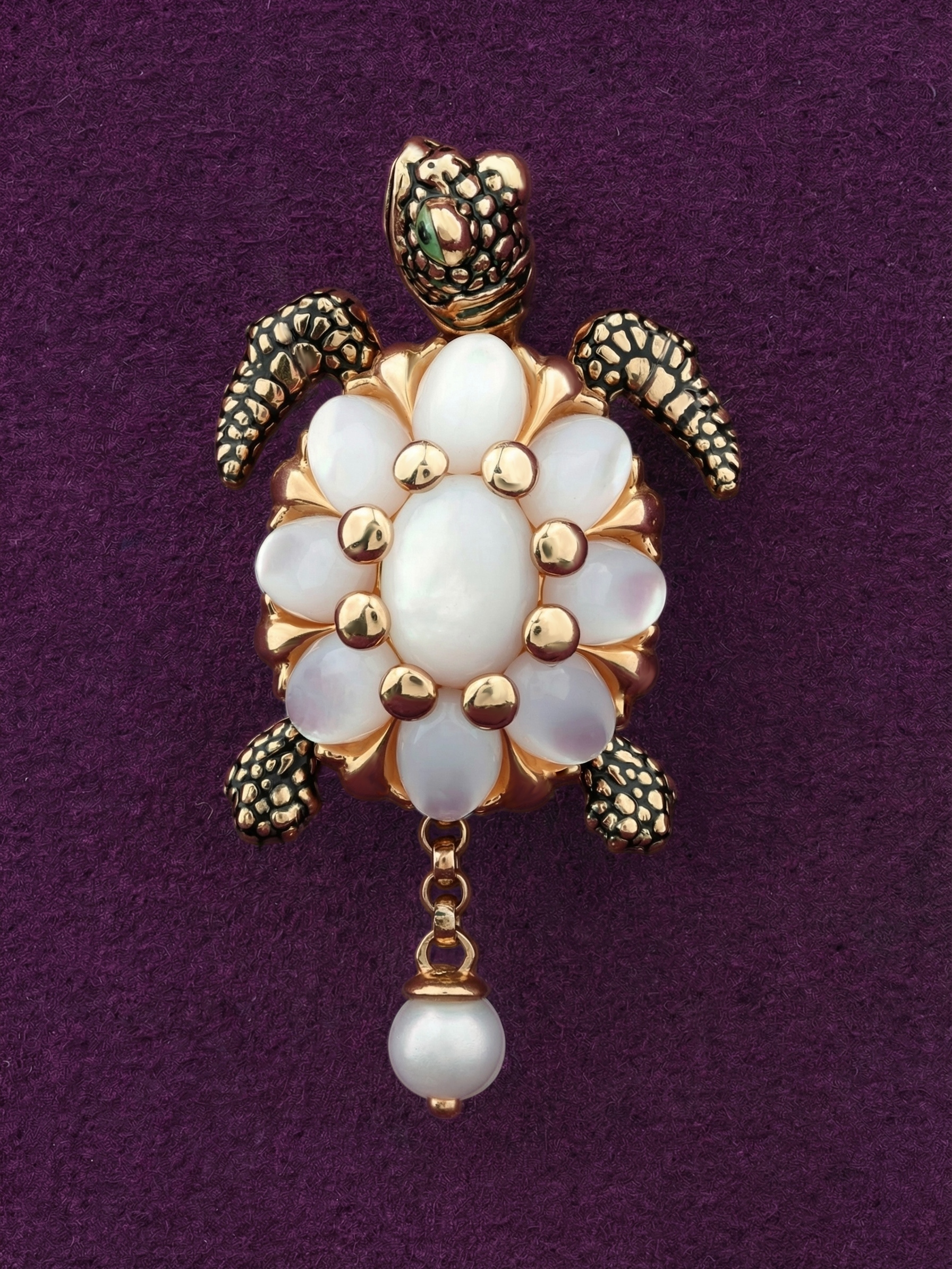 Подвеска из золота c эмаль, жемчугом и перламутром