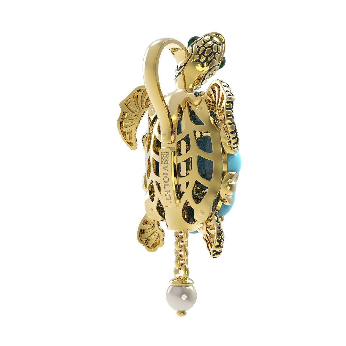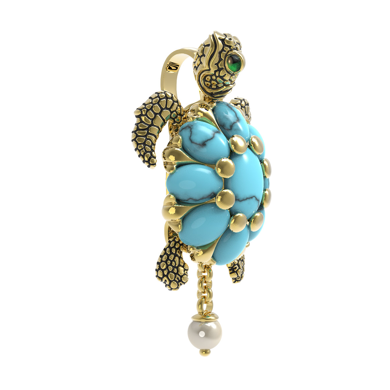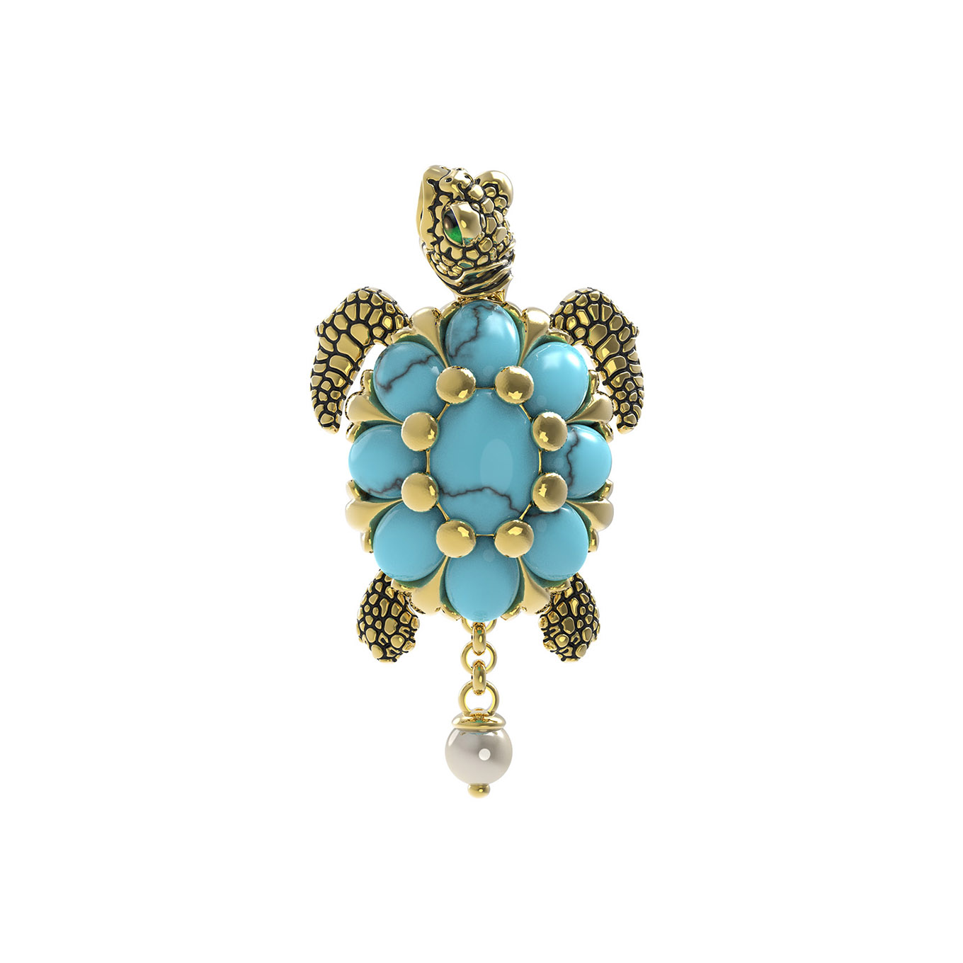 Подвеска из лимонного золота c эмаль, жемчугом и бирюзой