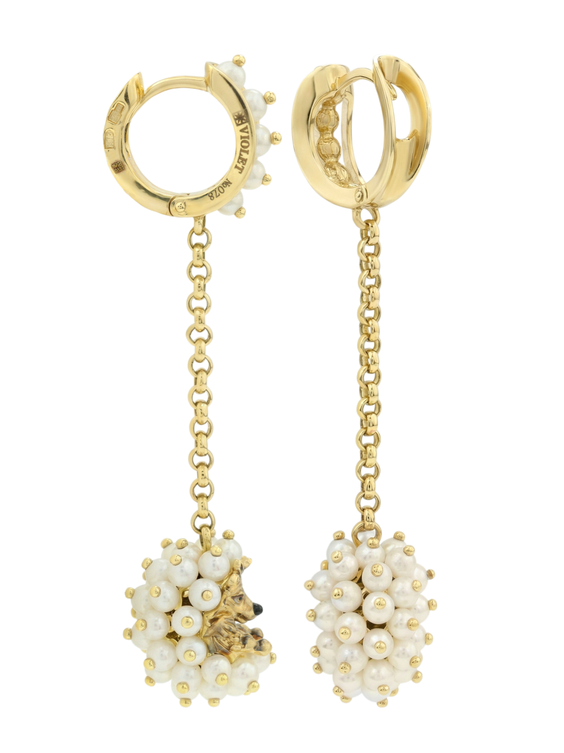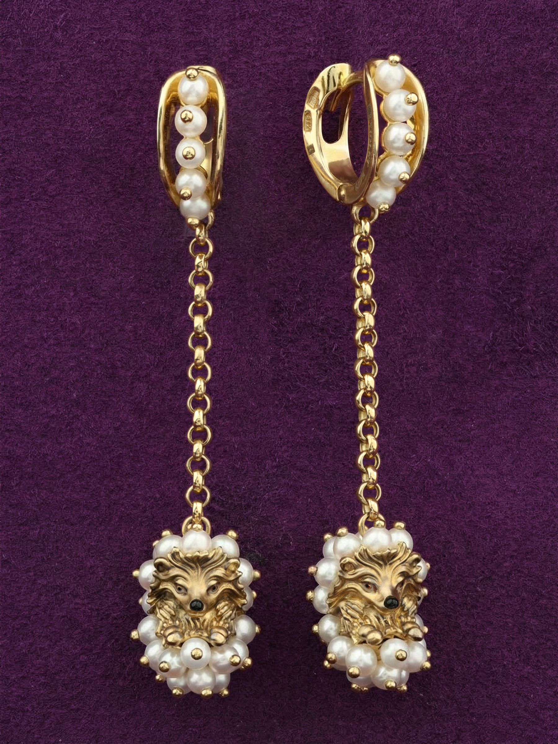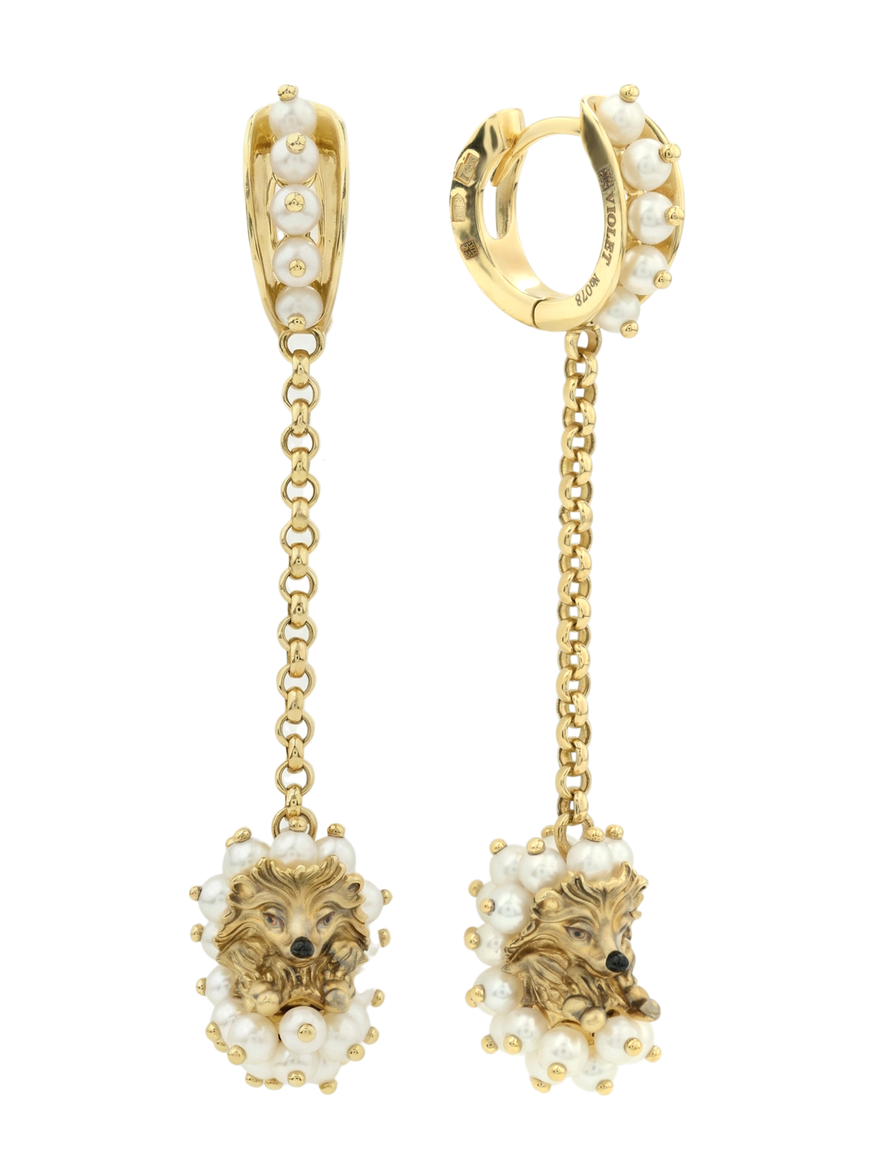Серьги из лимонного золота c эмаль и жемчугом