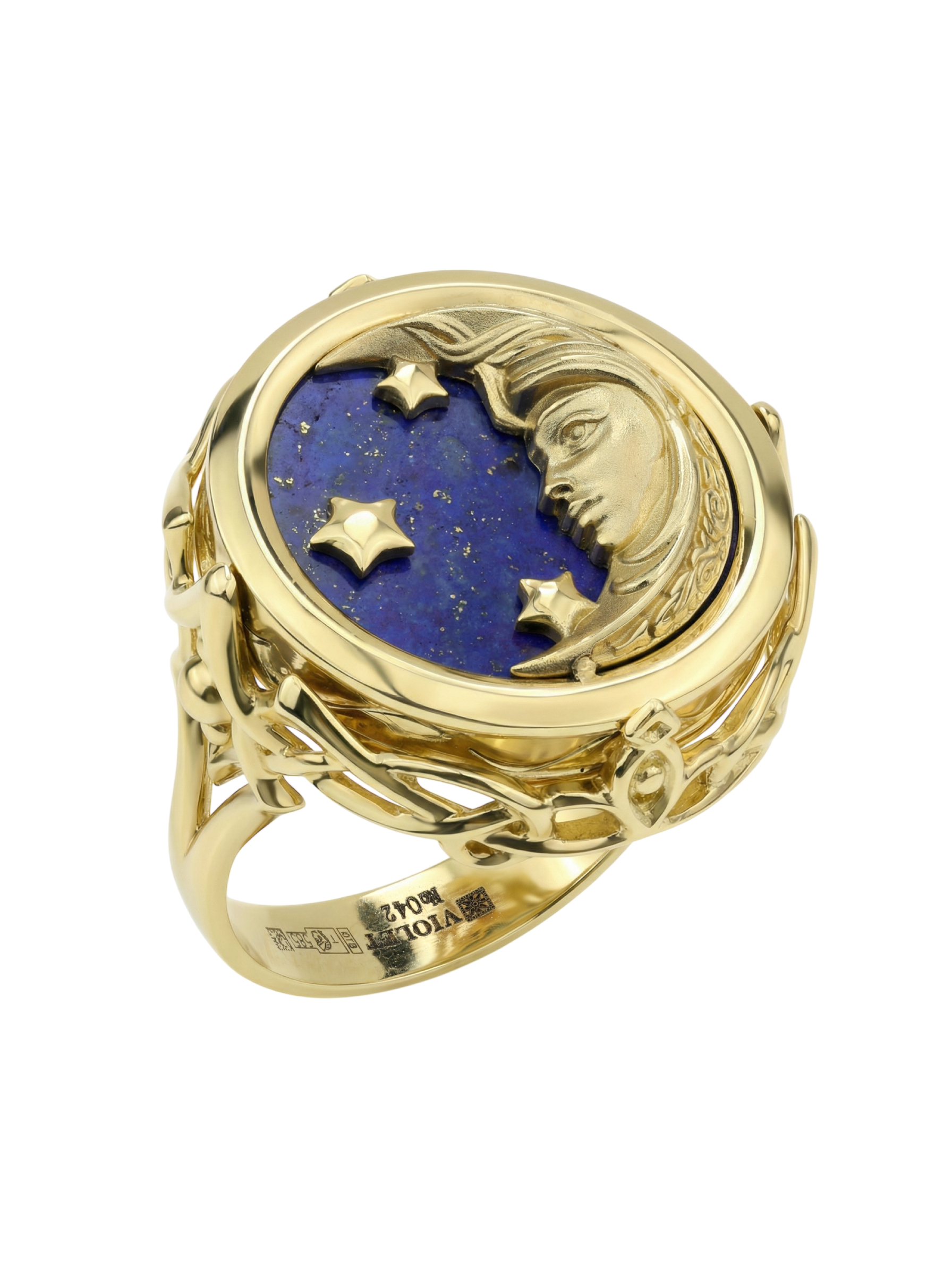 Кольцо из лимонного золота c бирюзой и лазуритом