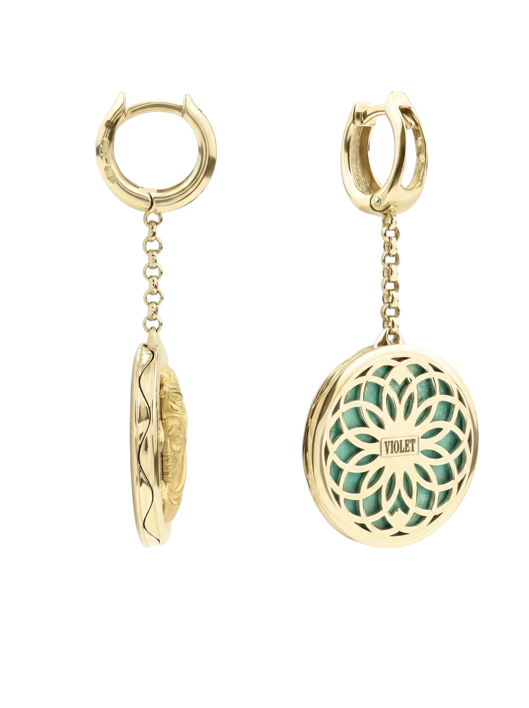 Серьги из лимонного золота c бирюзой и лазуритом