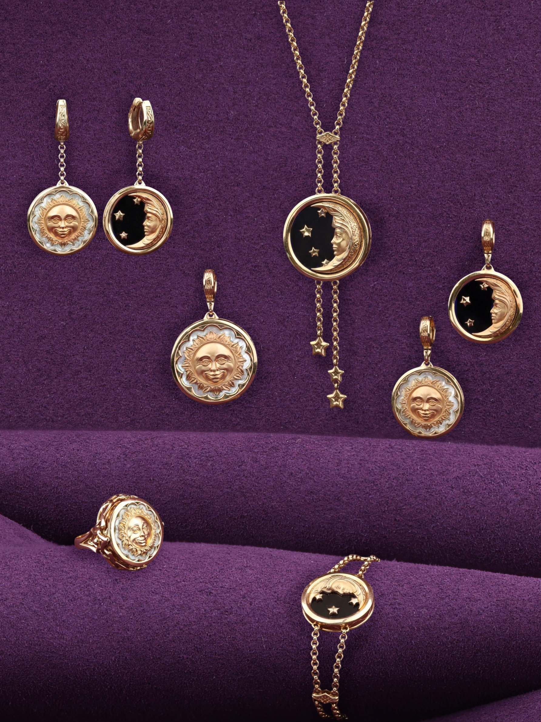 Колье из золота c ониксом и перламутром