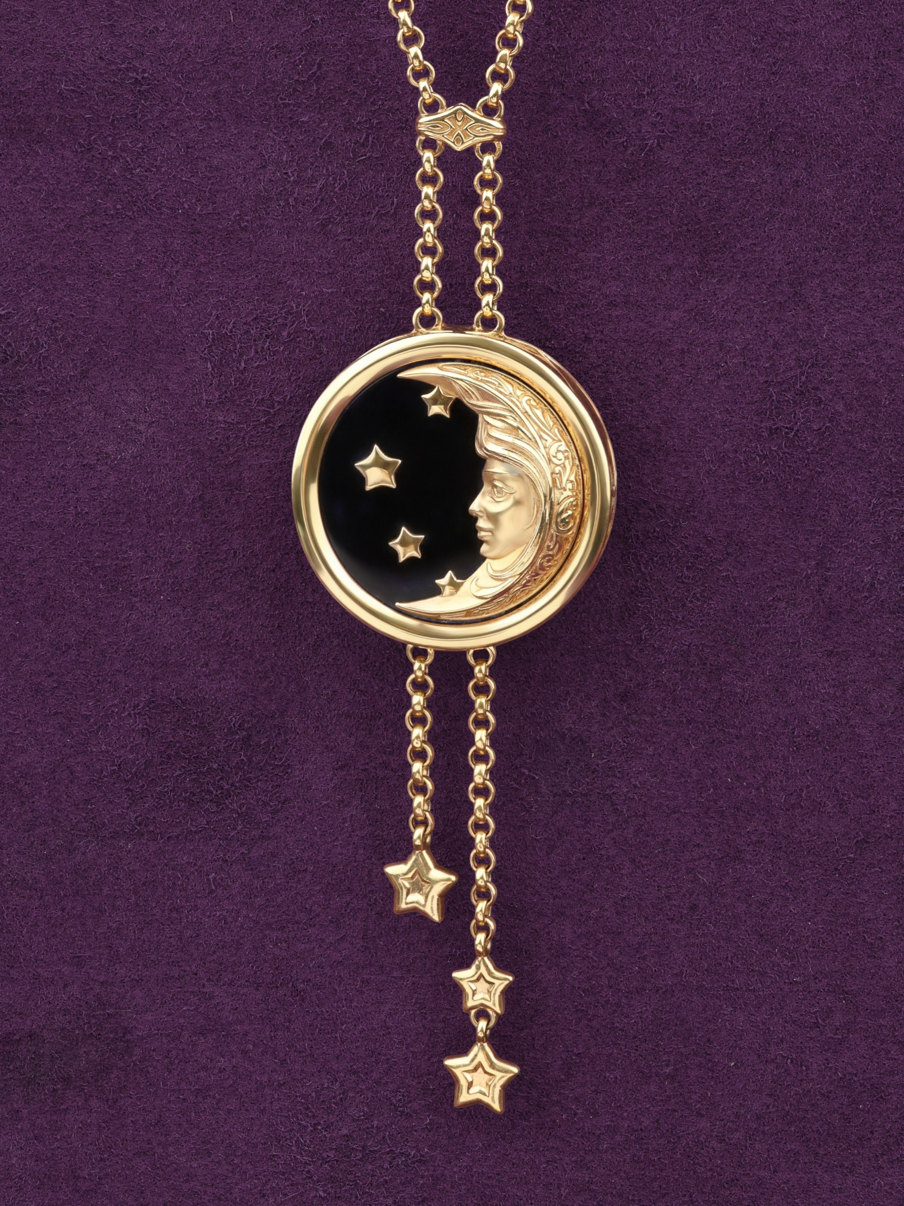 Колье из лимонного золота c ониксом и перламутром