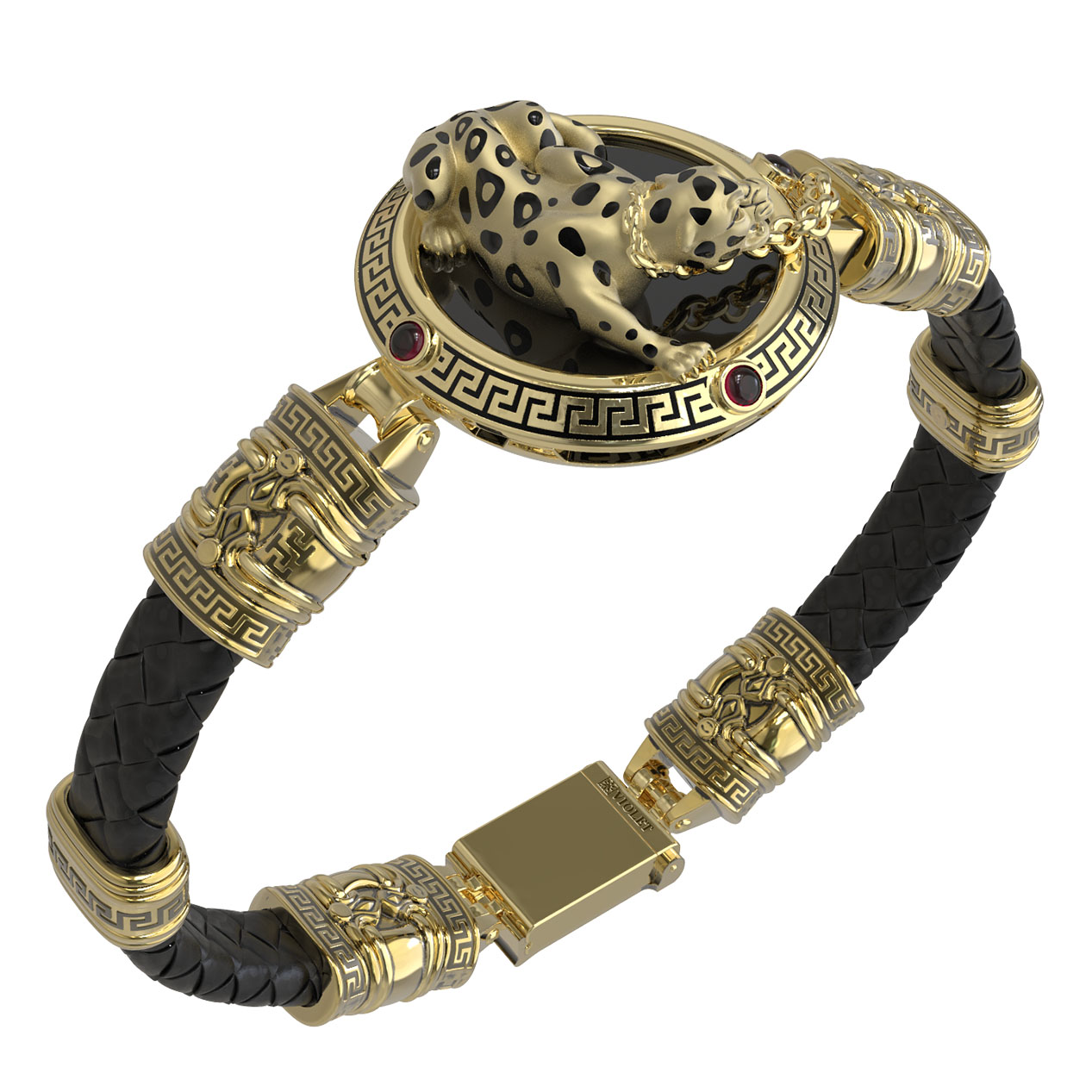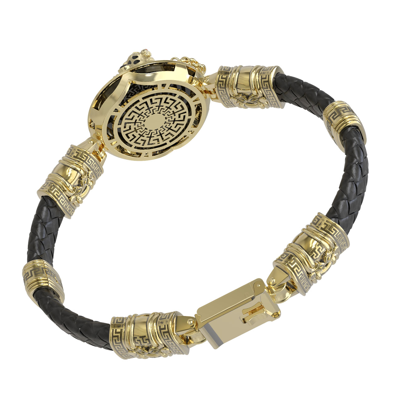 Браслет из лимонного золота c эмаль, шнурком, ониксом и рубином