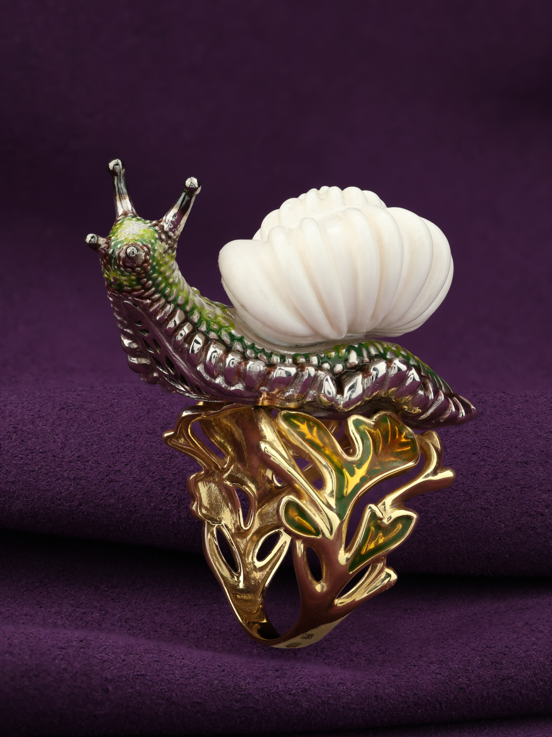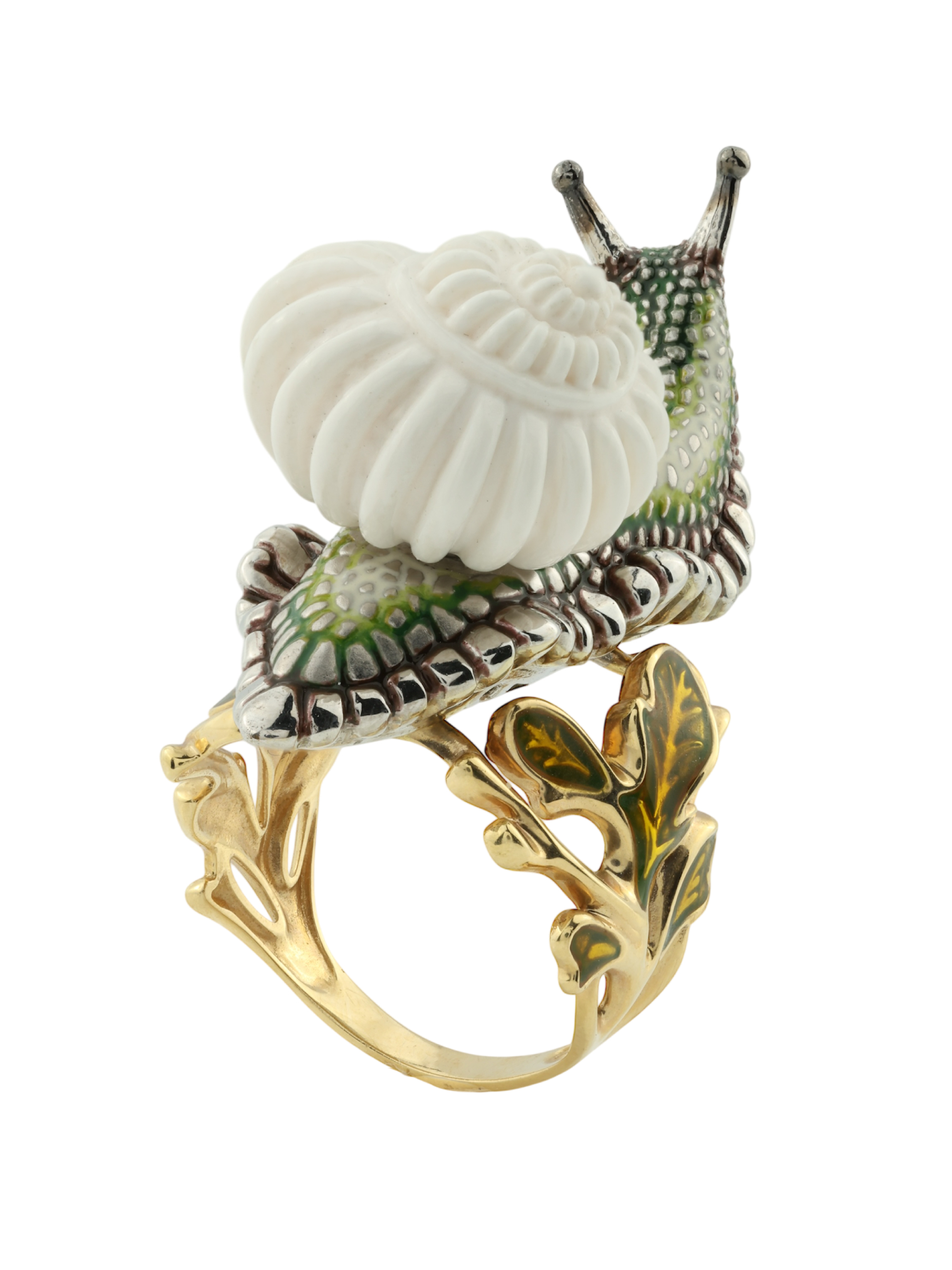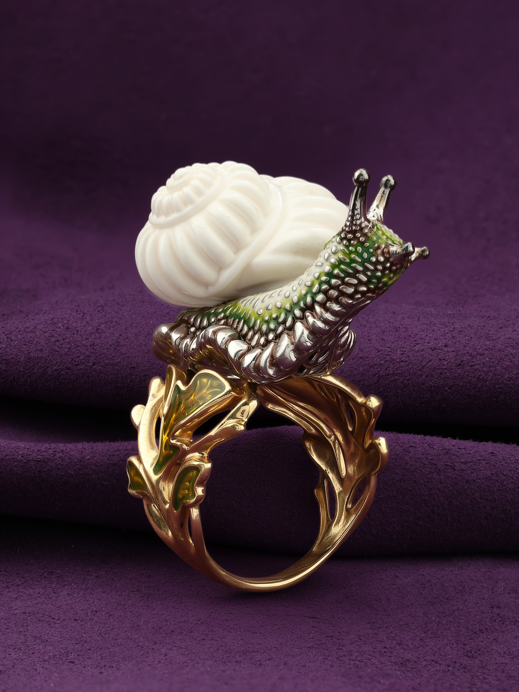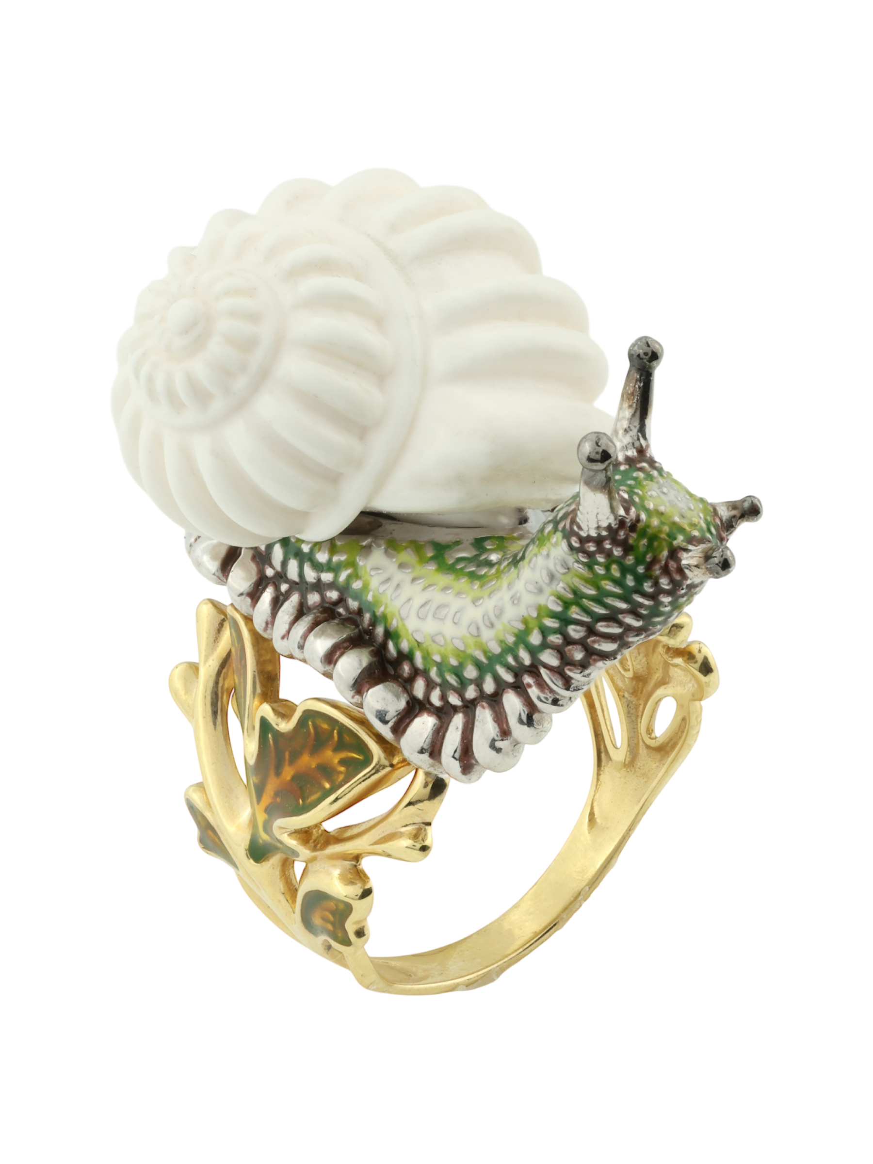 Кольцо из лимонного золота c эмаль и бивнем мамонта
