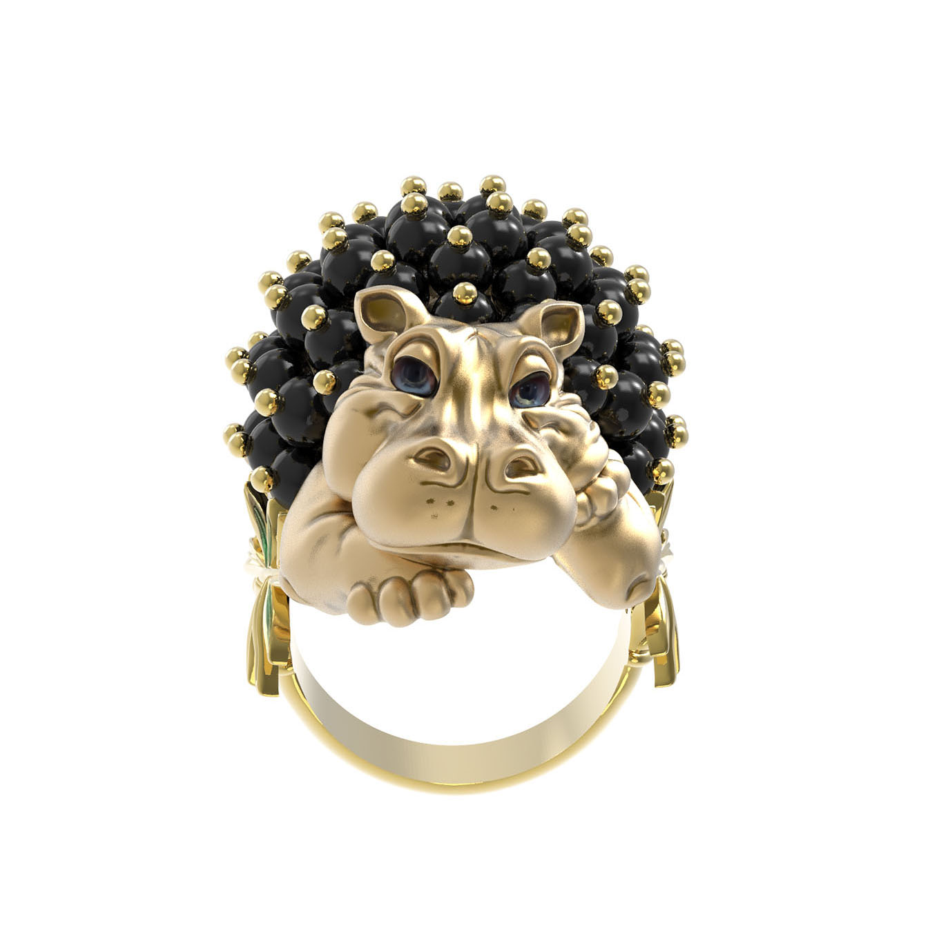 Кольцо из лимонного золота c эмаль и ониксом