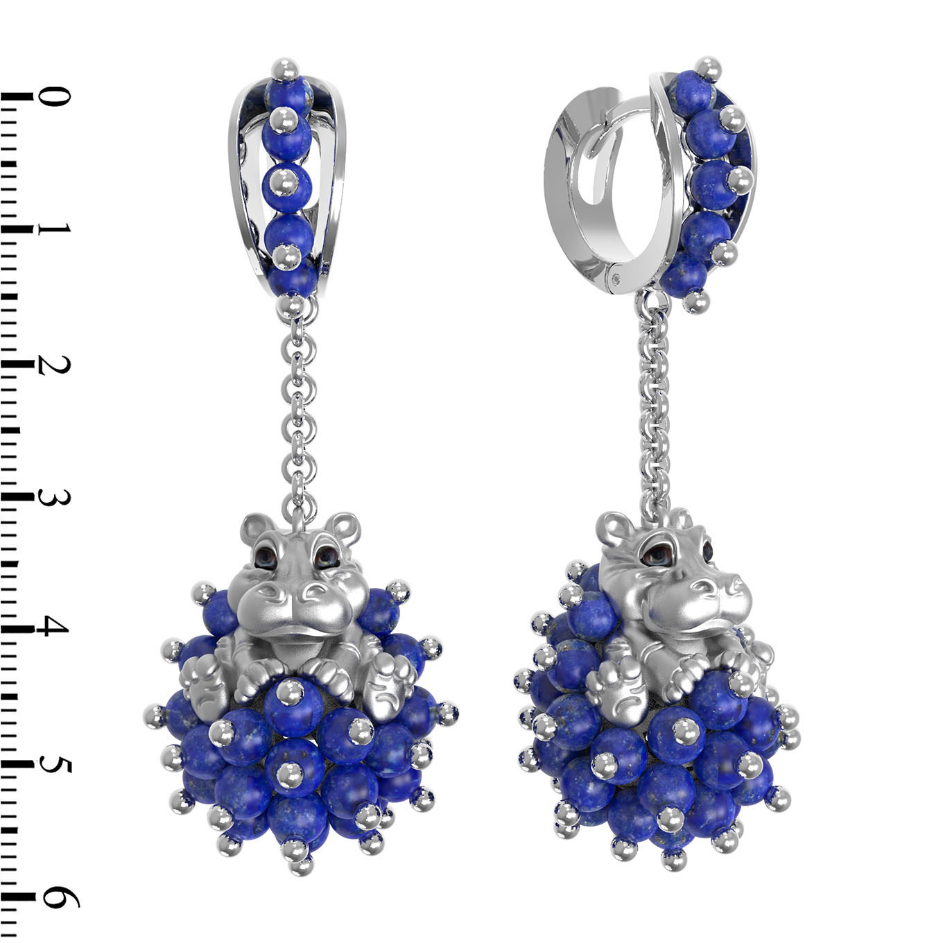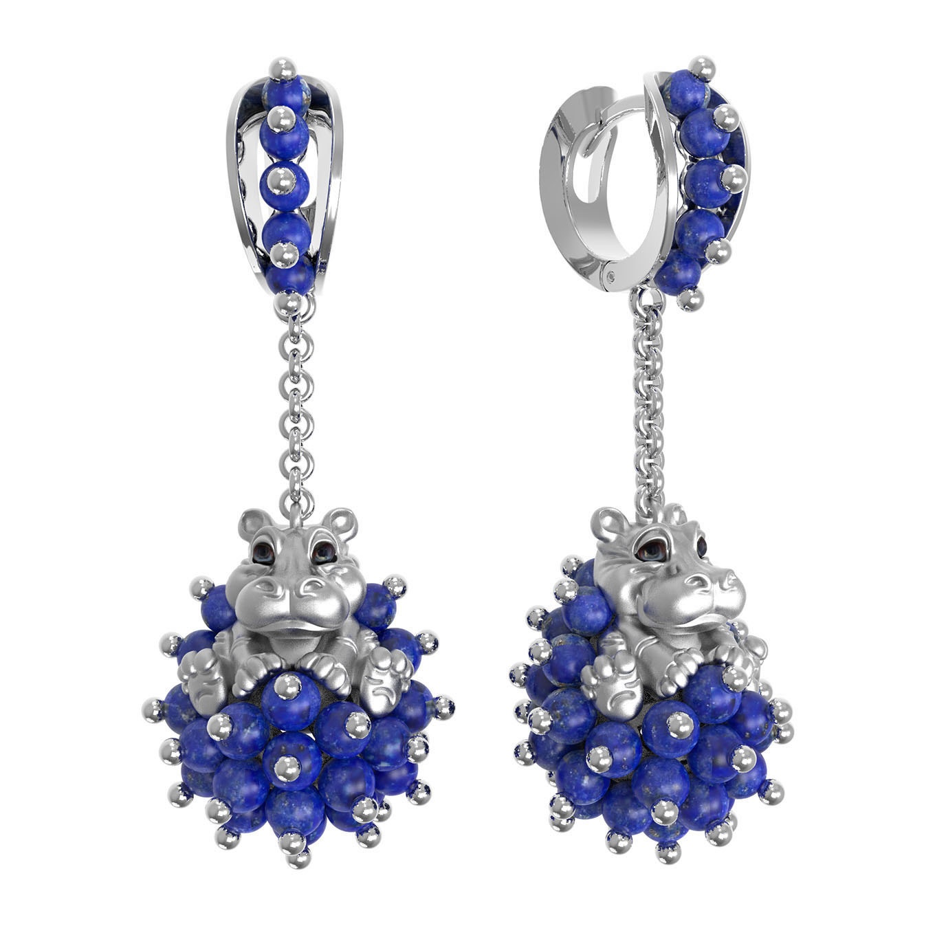 Серьги из белого золота c эмаль и лазуритом