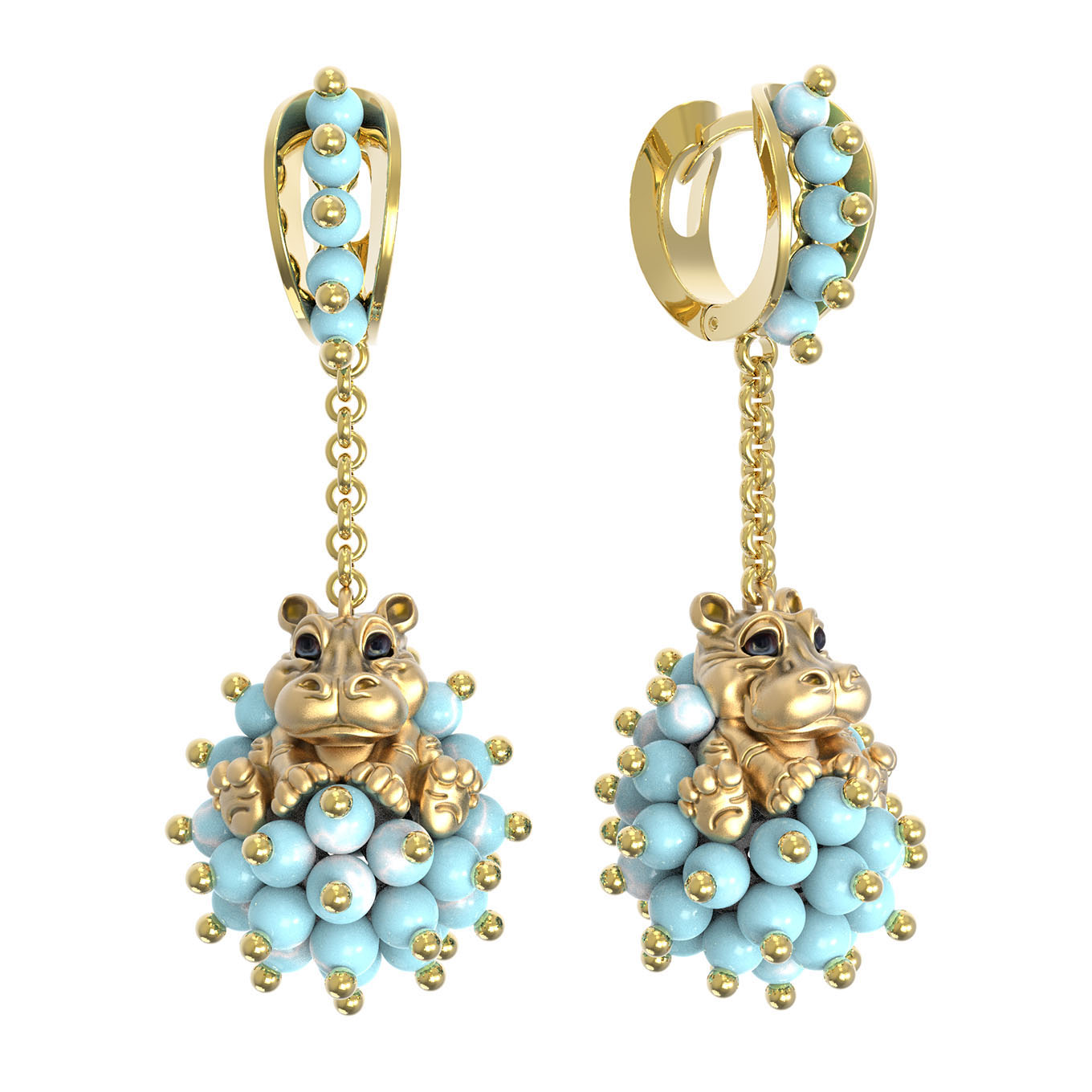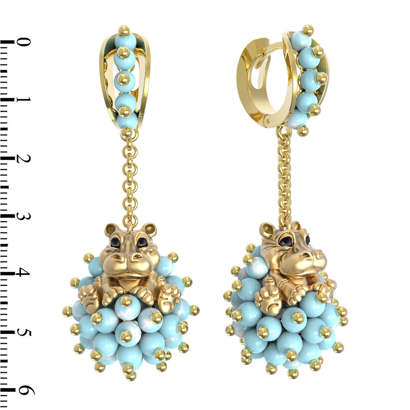 Серьги из лимонного золота c эмаль и бирюзой